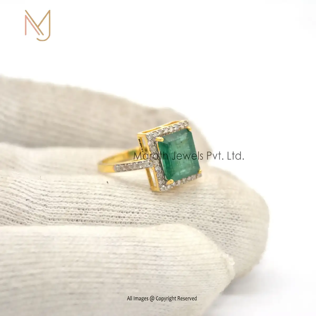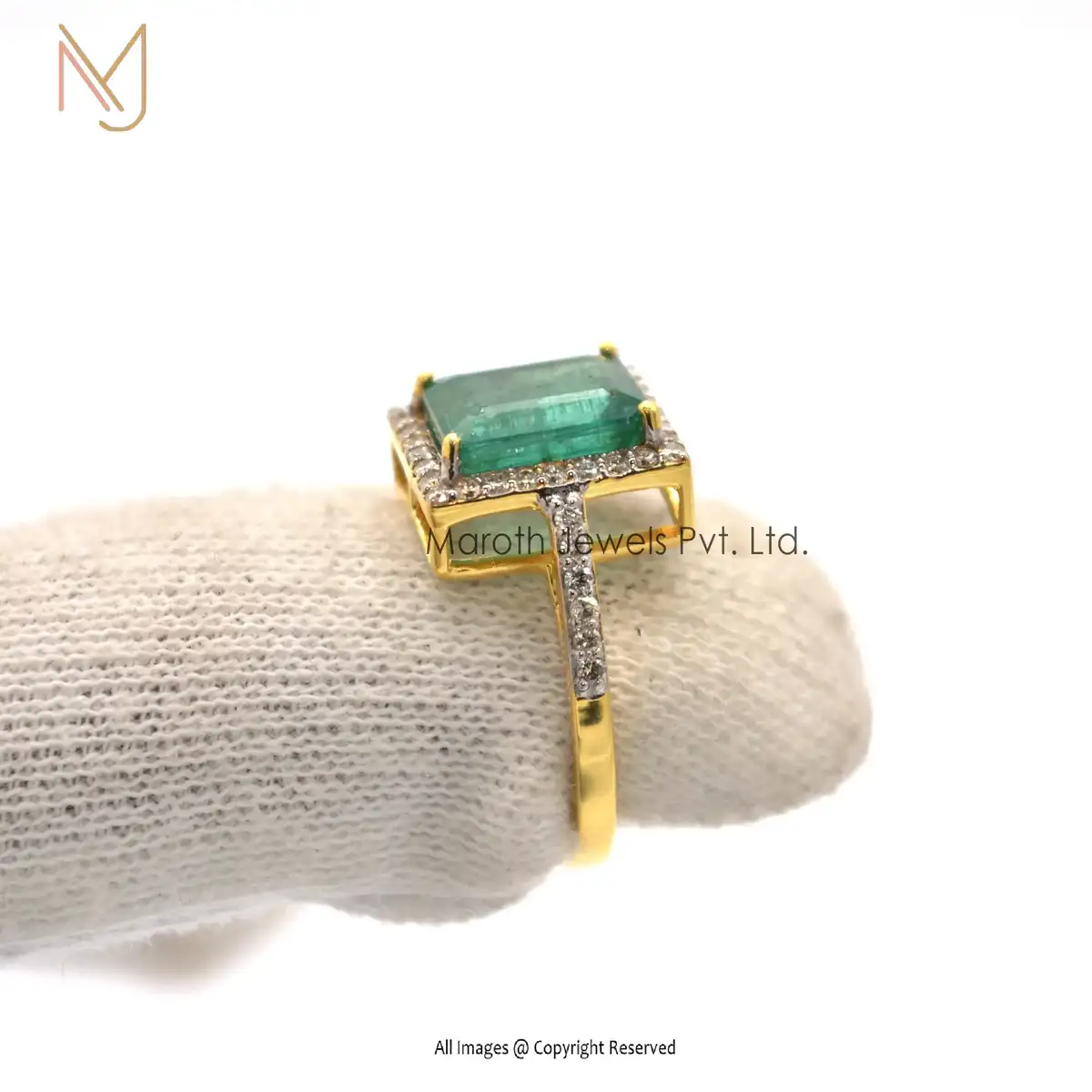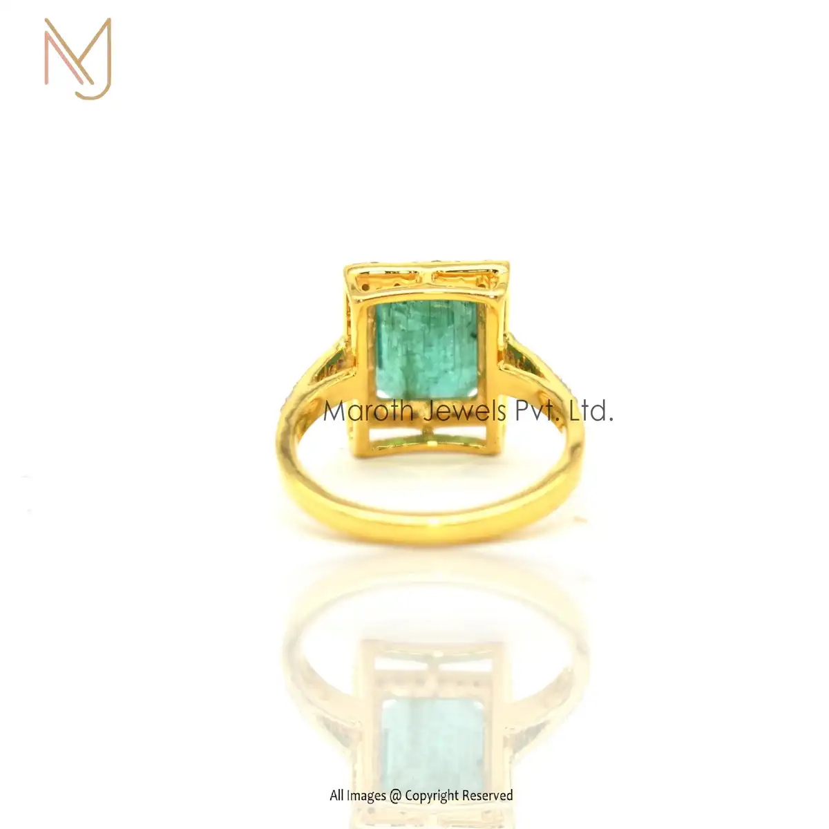 925 Silver Gold Pave Diamond Emerald Gemstone Ring Manufacturer