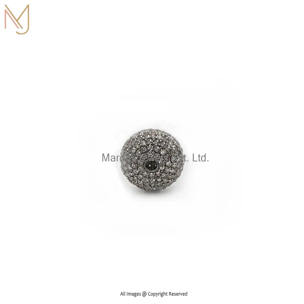 925 Silver Gray Rhodium Plated Pave Diamond Round Beads Finding Jewelry Manufacturer
