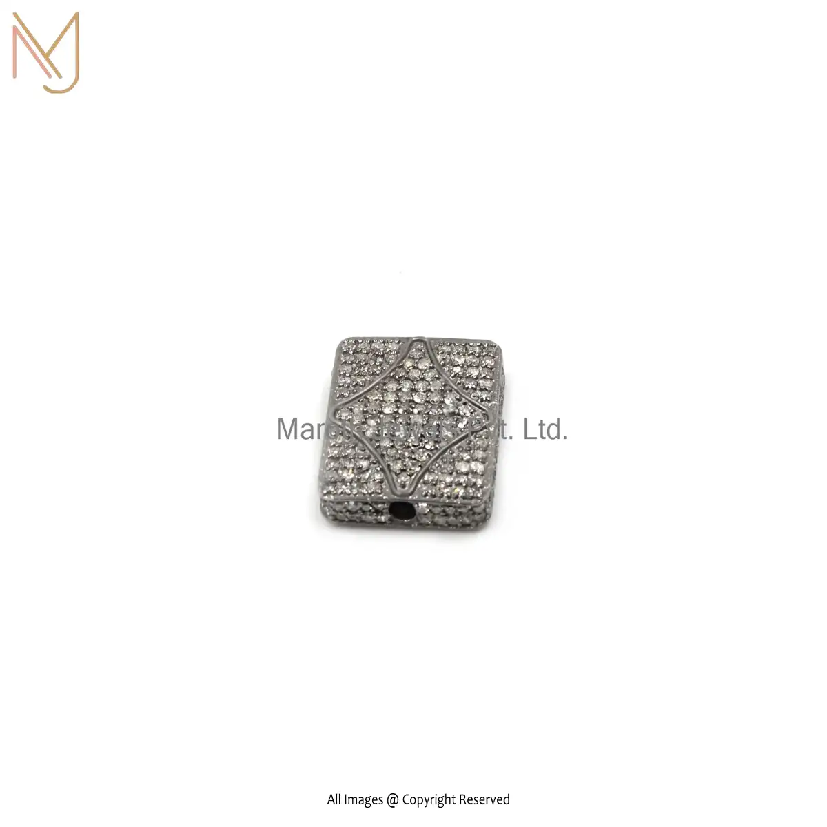 925 Silver Gray Rhodium Plated Rectangle Pave Diamond Beads Finding Jewelry Manufacturer