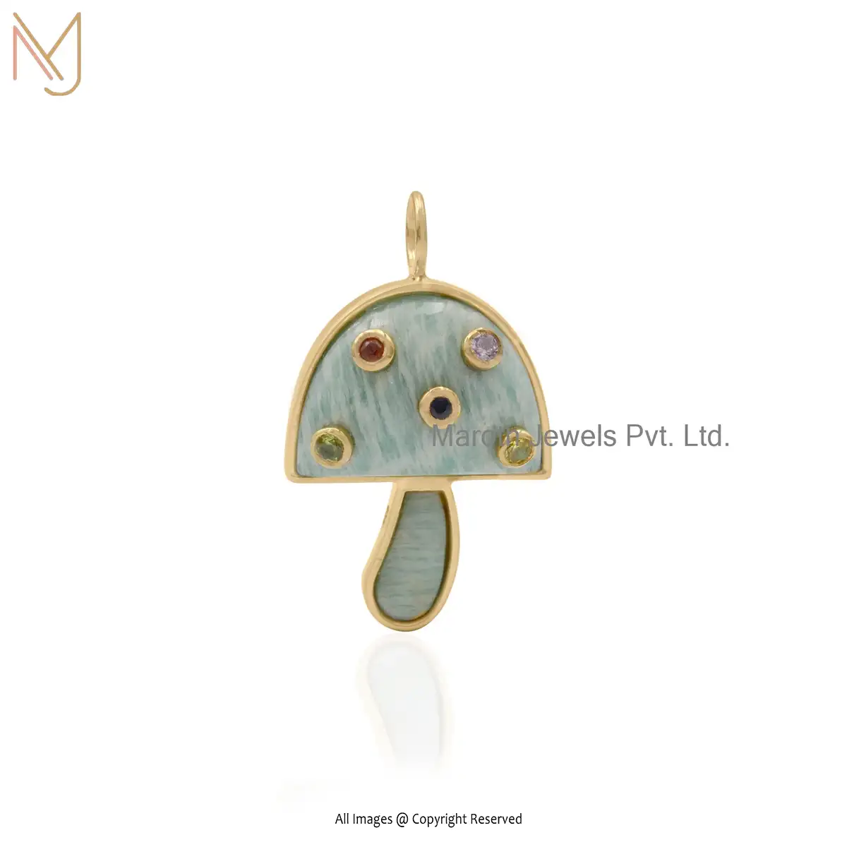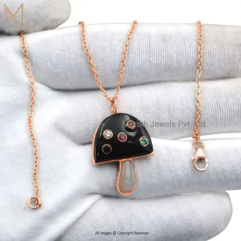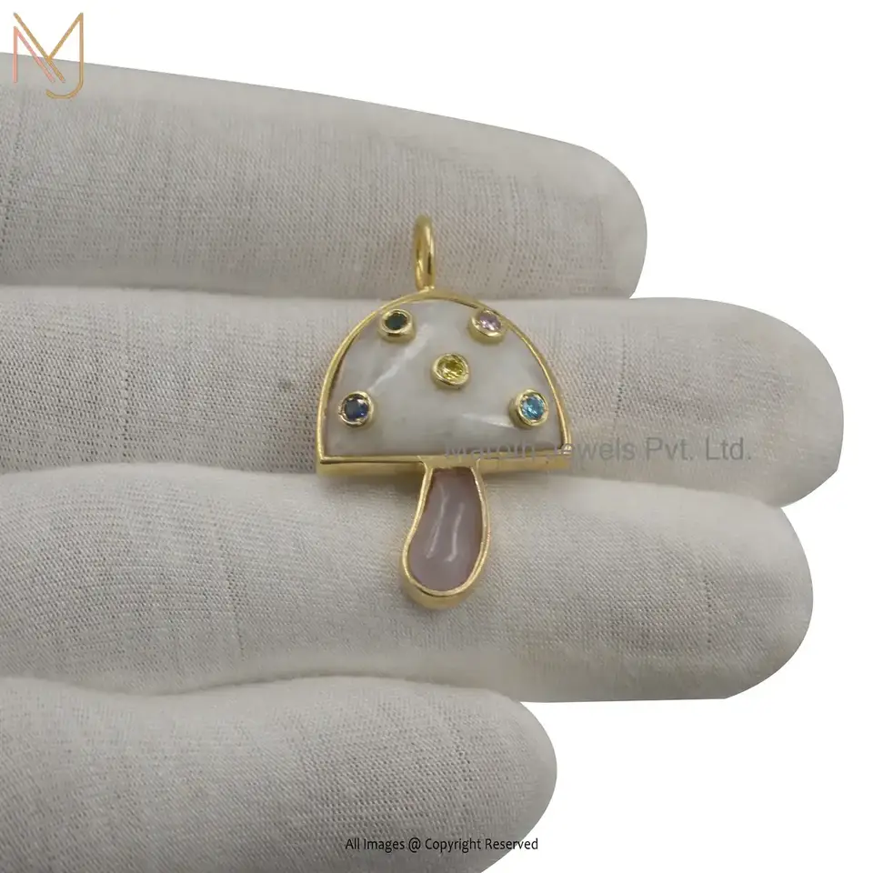 925 Silver Labradorite With Multi Synthetic Stones Mushroom Pendant Manufacturer