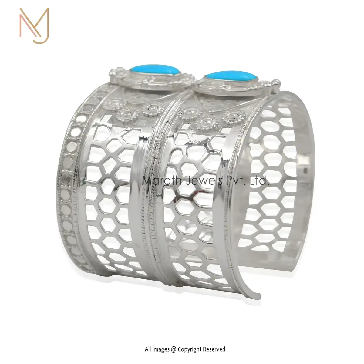 925 Silver Natural Silver Bangle With Turquoise Stone Jewelry Manufacturer