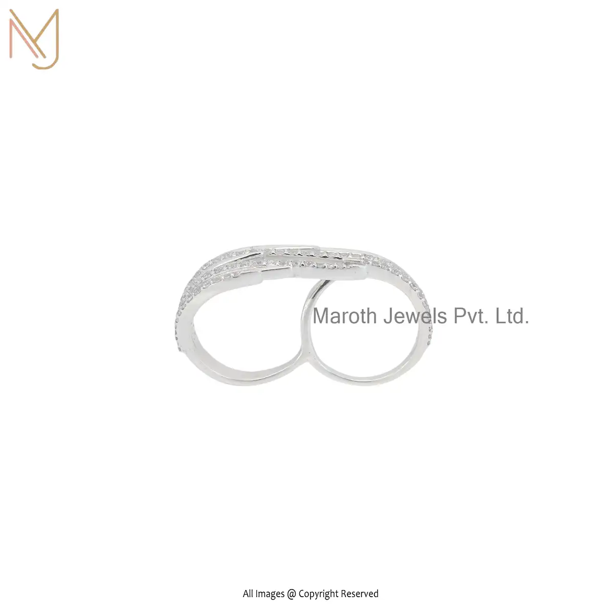 925 Silver Natural Silver Cubic Zircoina Two Finger Ring Manufacturer