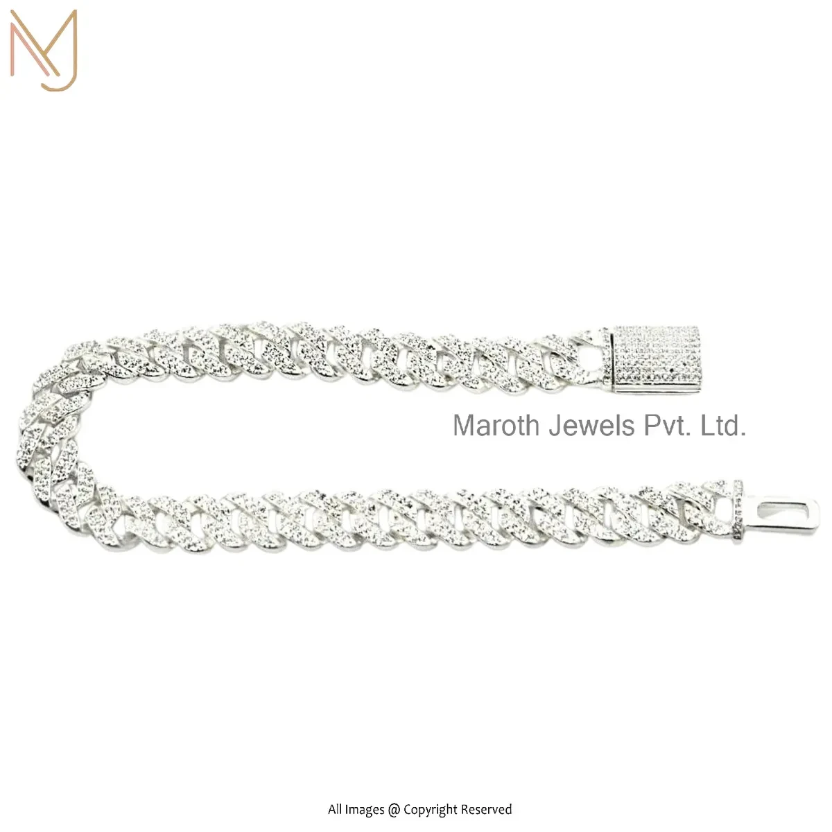 925 Silver Natural Silver Cubic Zircon Curb Chain Bracelet Jewelry Supplier