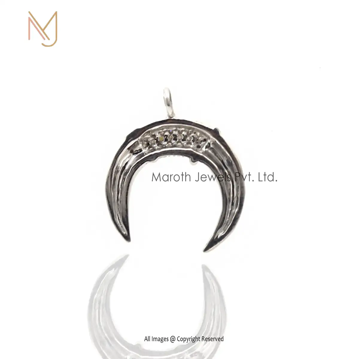 925 Silver Natural Silver Pave Diamond Crescent Half Moon Pendant Jewelry Manufacturer