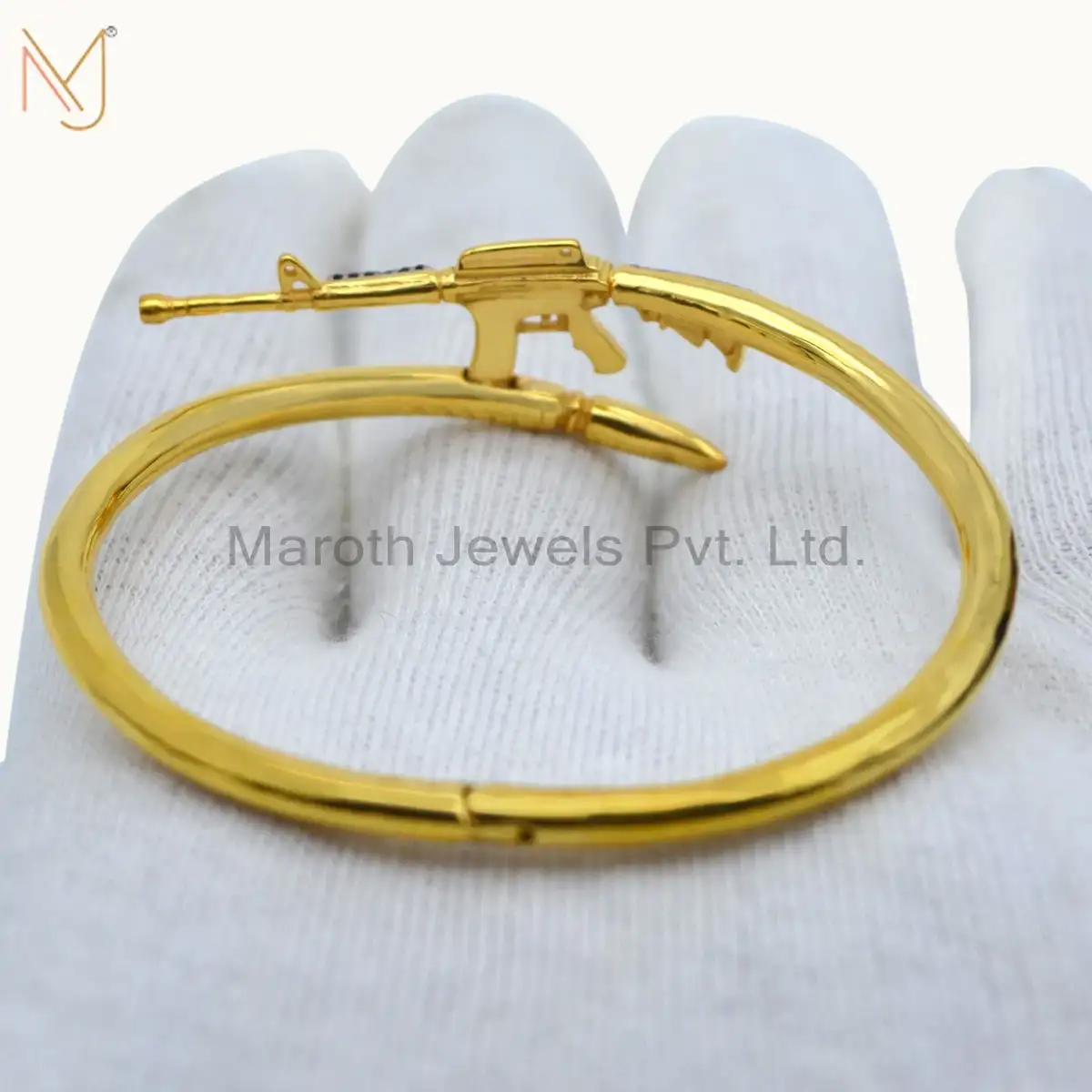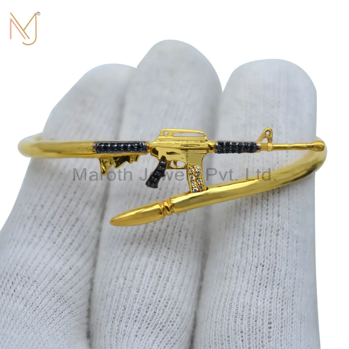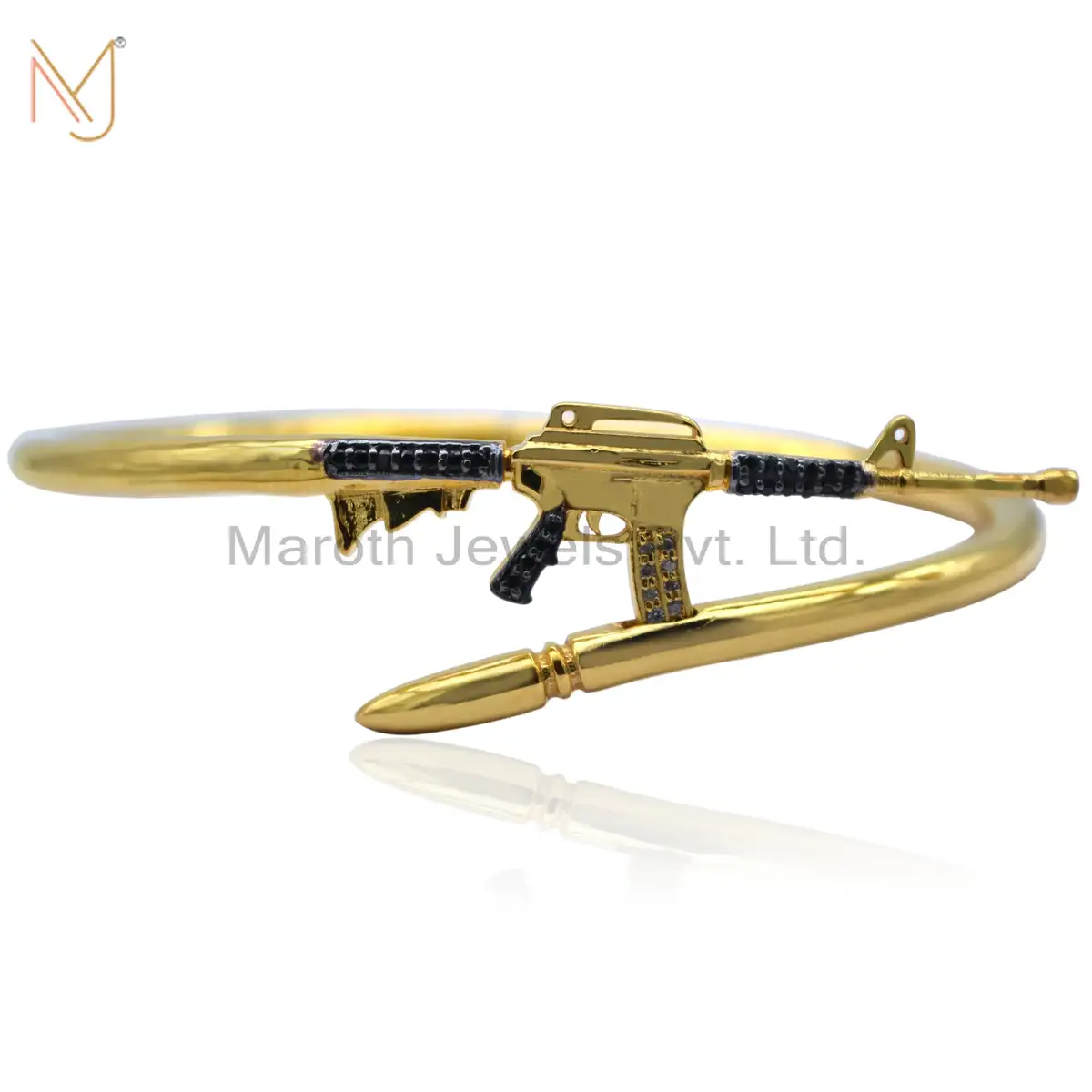 925 Silver Natural Silver Pave Diamond Yellow Gold Black Spinel Bangle Gun Design Jewelry Manufacturer