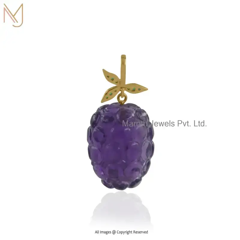 925 Silver Natural Silver Plated Amethyst And Green CZ Strawberry Pendant Manufacturer
