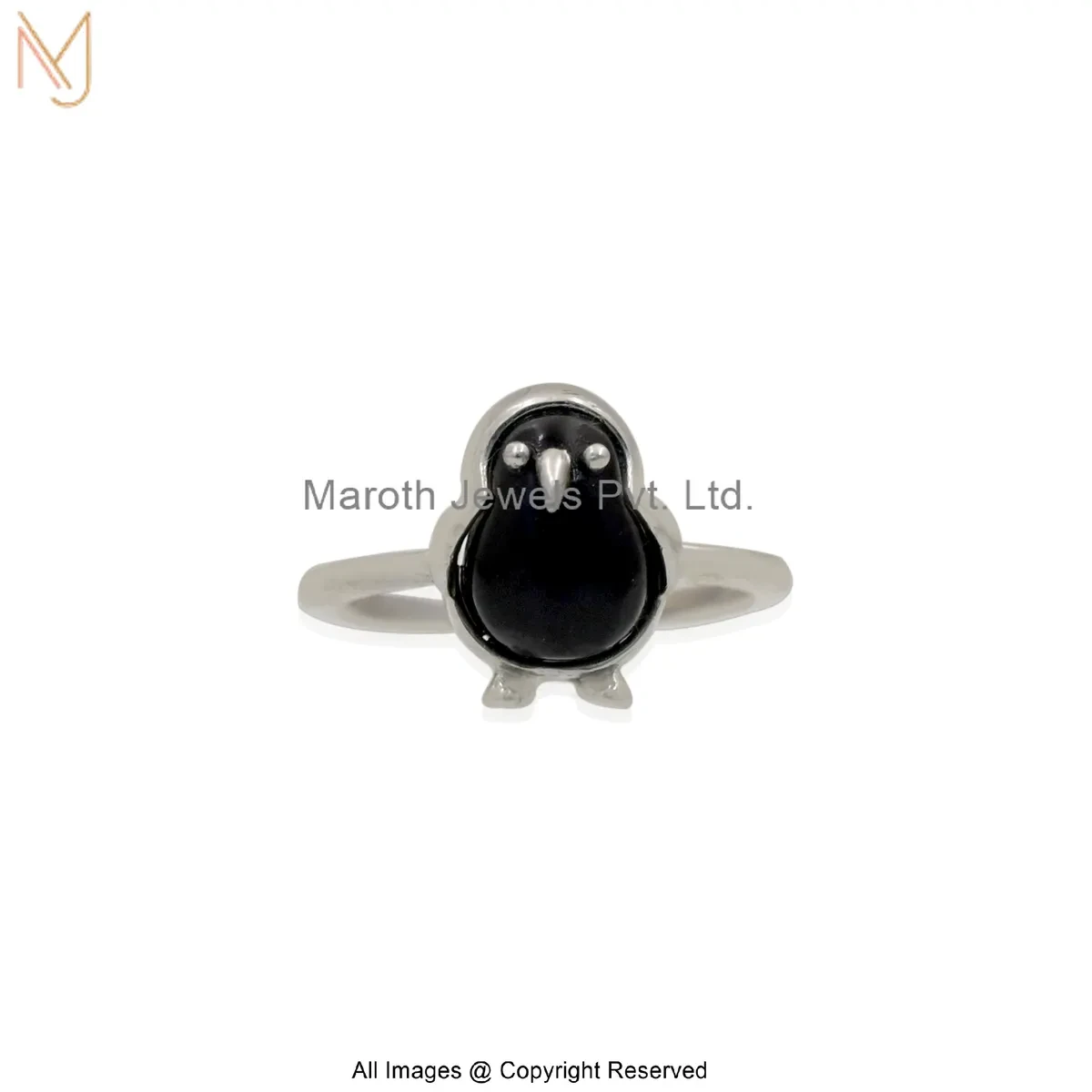 925 Silver Natural SIlver Plated Black Onyx Penguin Ring Jewelry Supplier