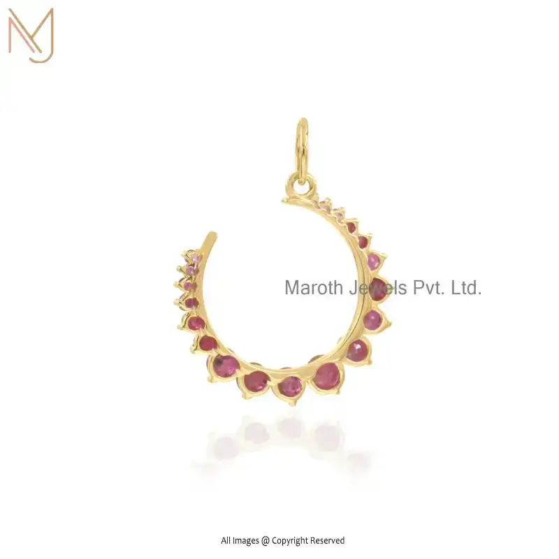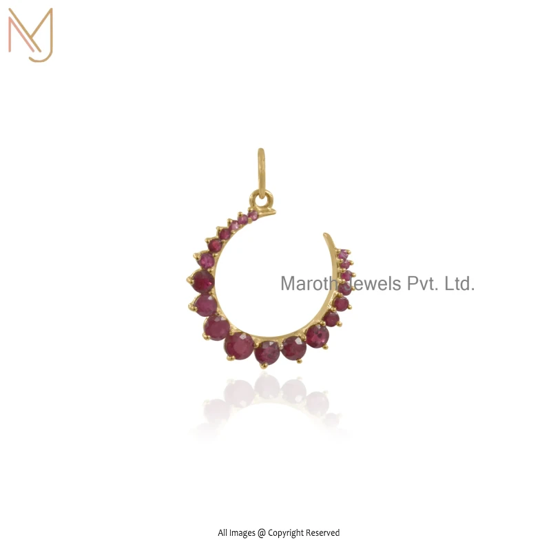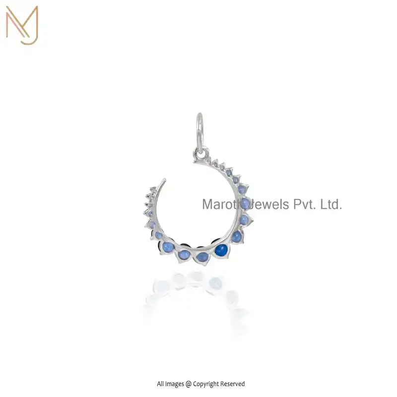 925 Silver Natural Silver Plated Blue Sapphire Crescent Moon Charm Pendant Custom Jewelry