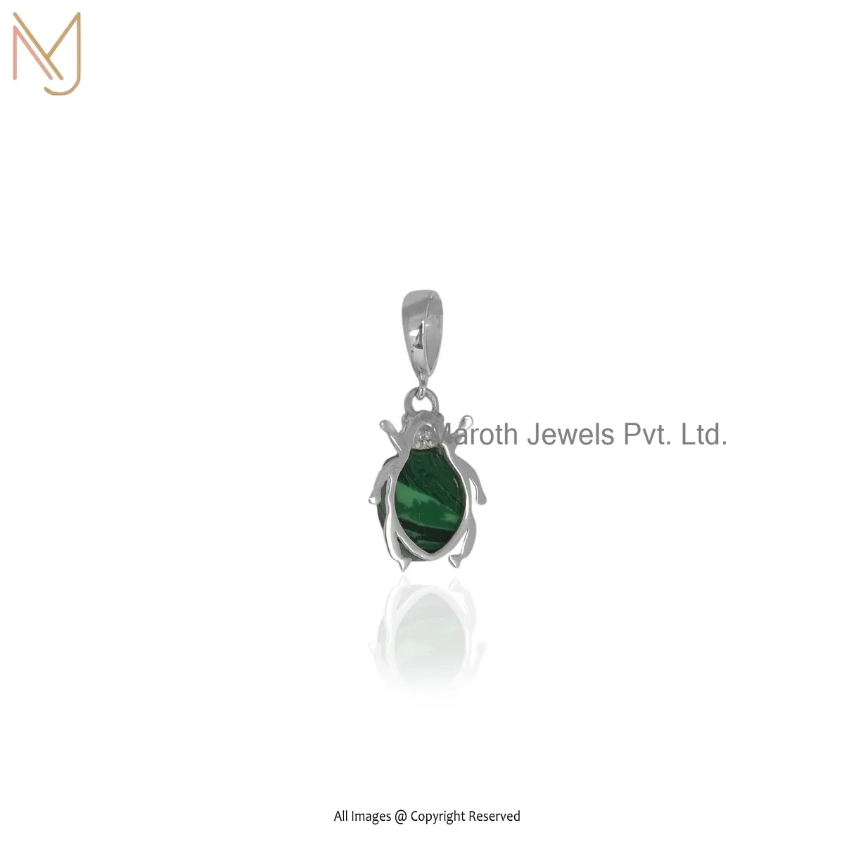 925 Silver Natural Silver Plated Cubic Zircon & Malachite Gemstone Pendant Jewelry Supplier