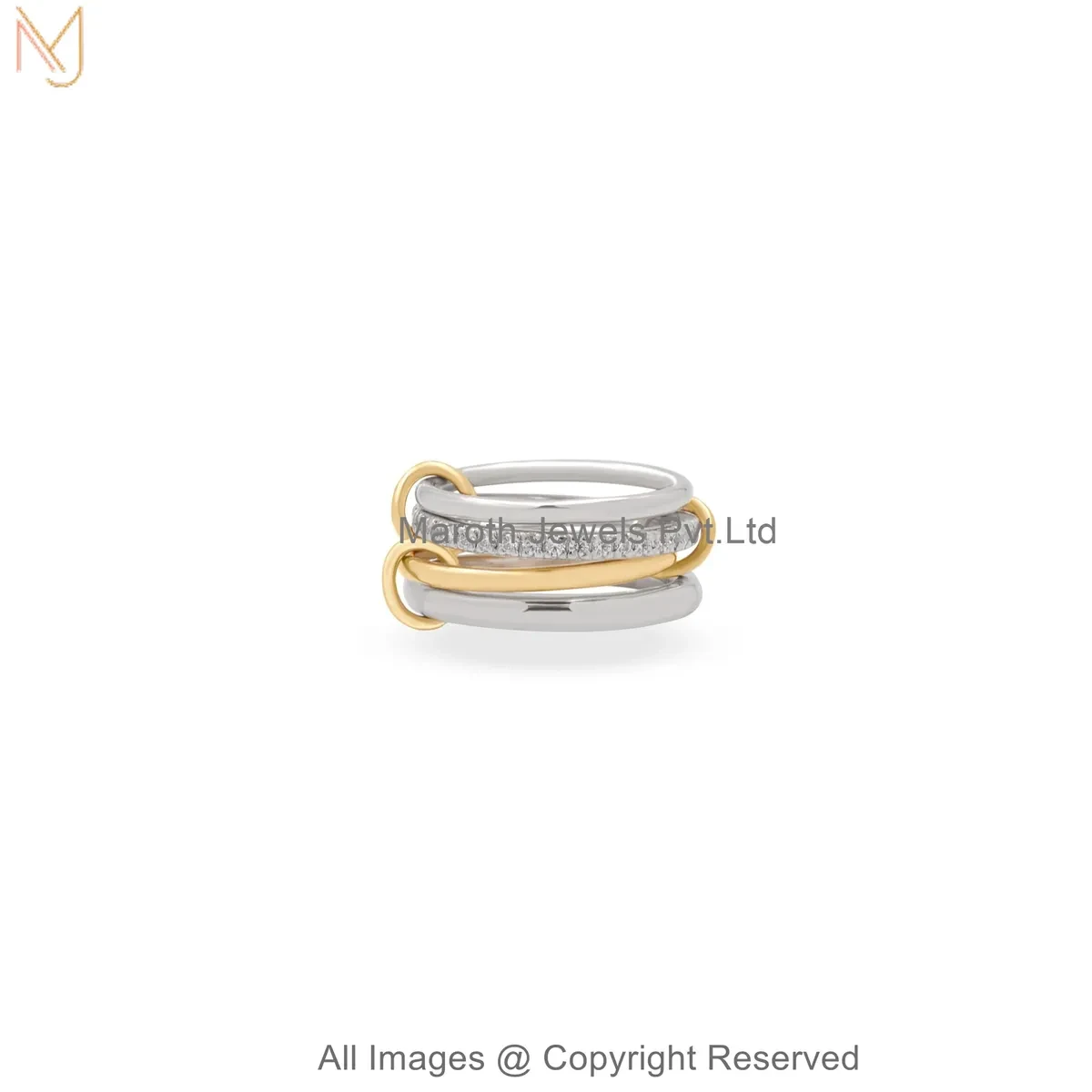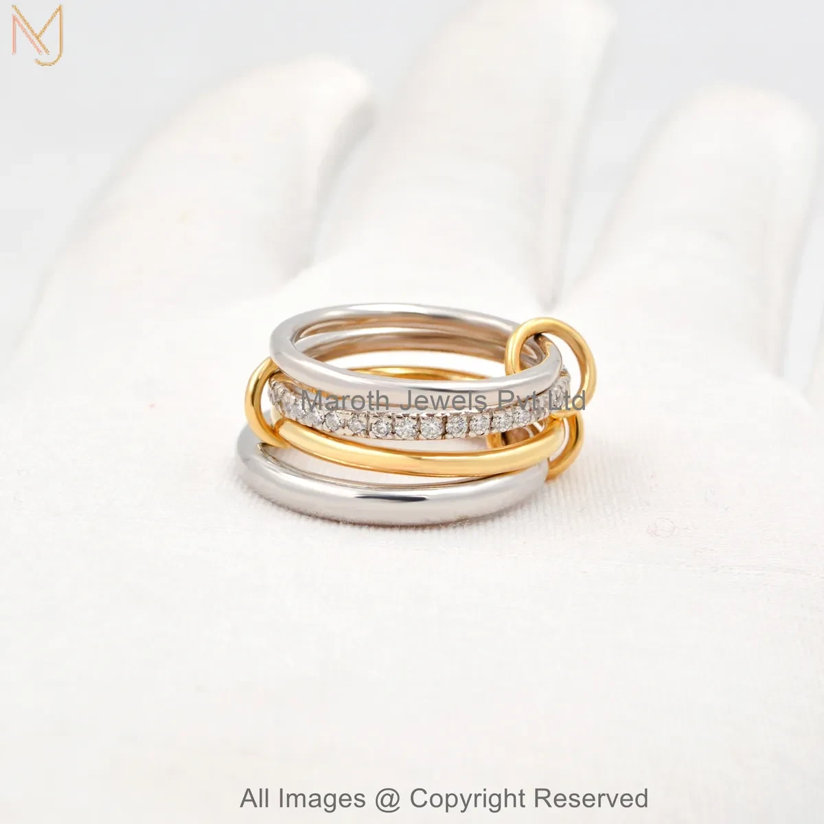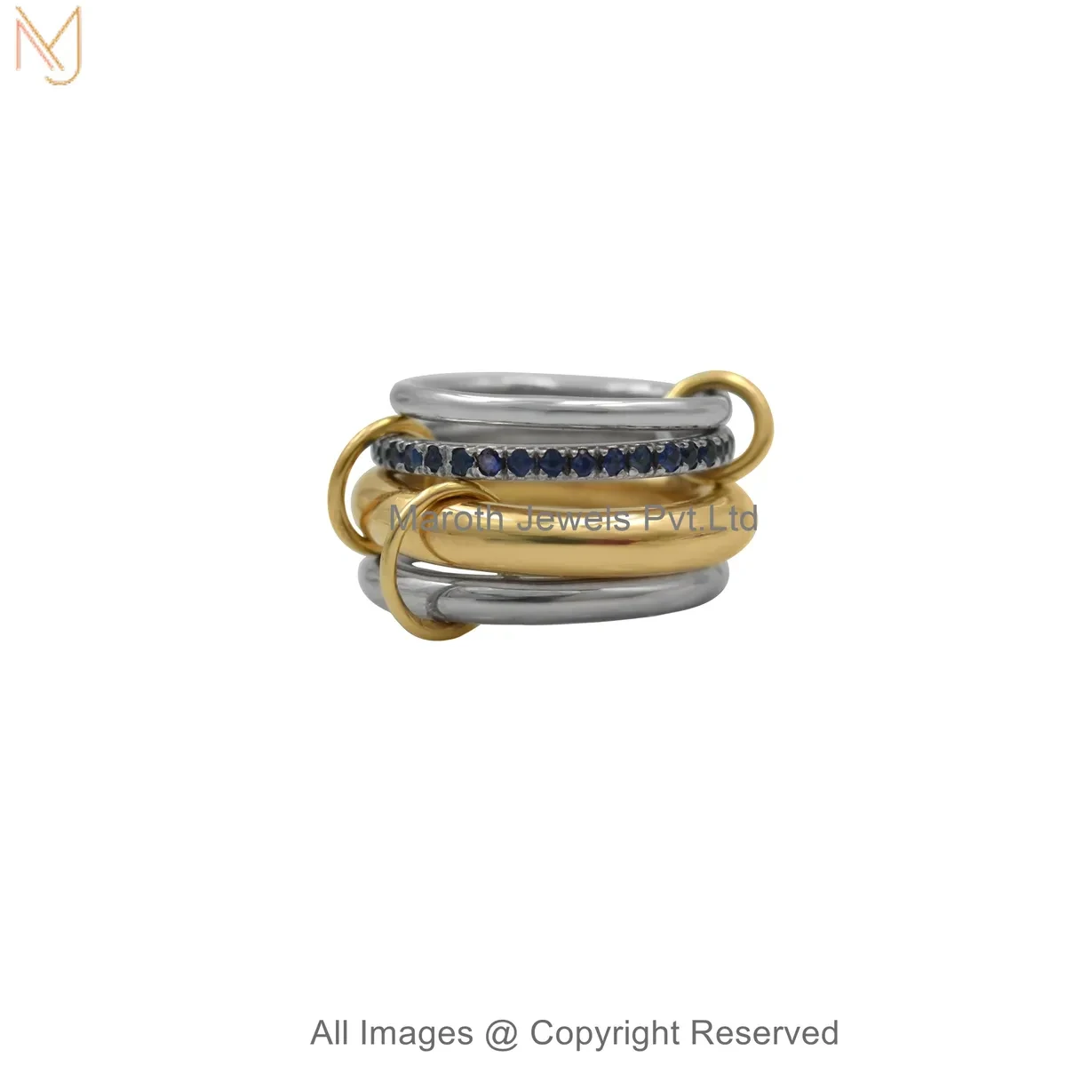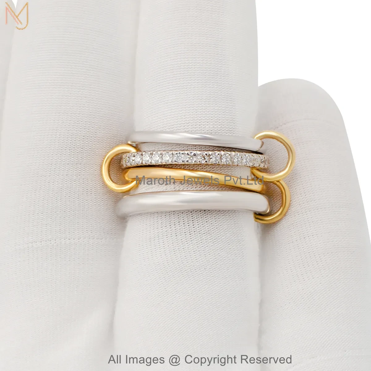 925 Silver Natural Silver Plated Diamond Cubic Zircon Gemstone Two Tone Multi Band Connector Ring USA