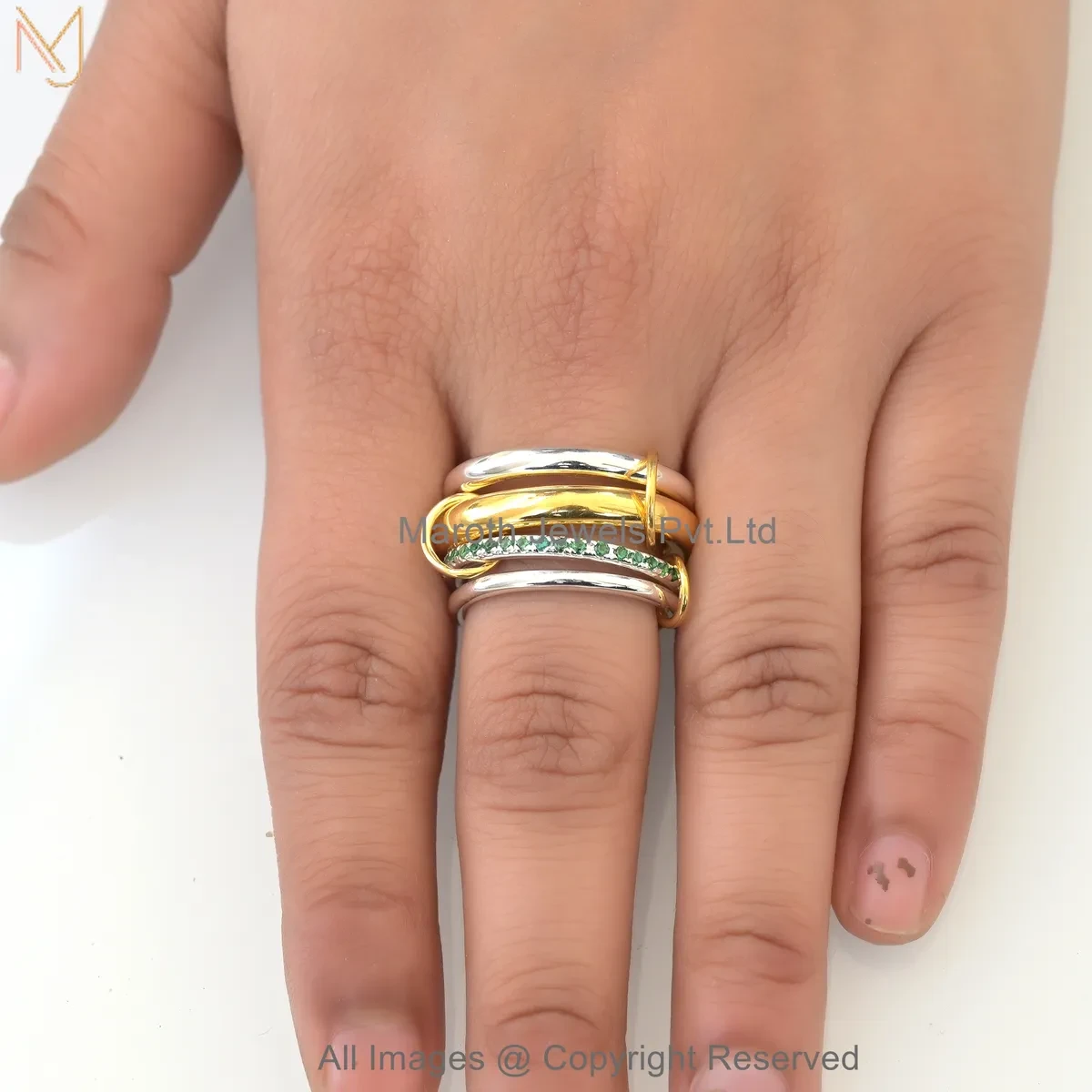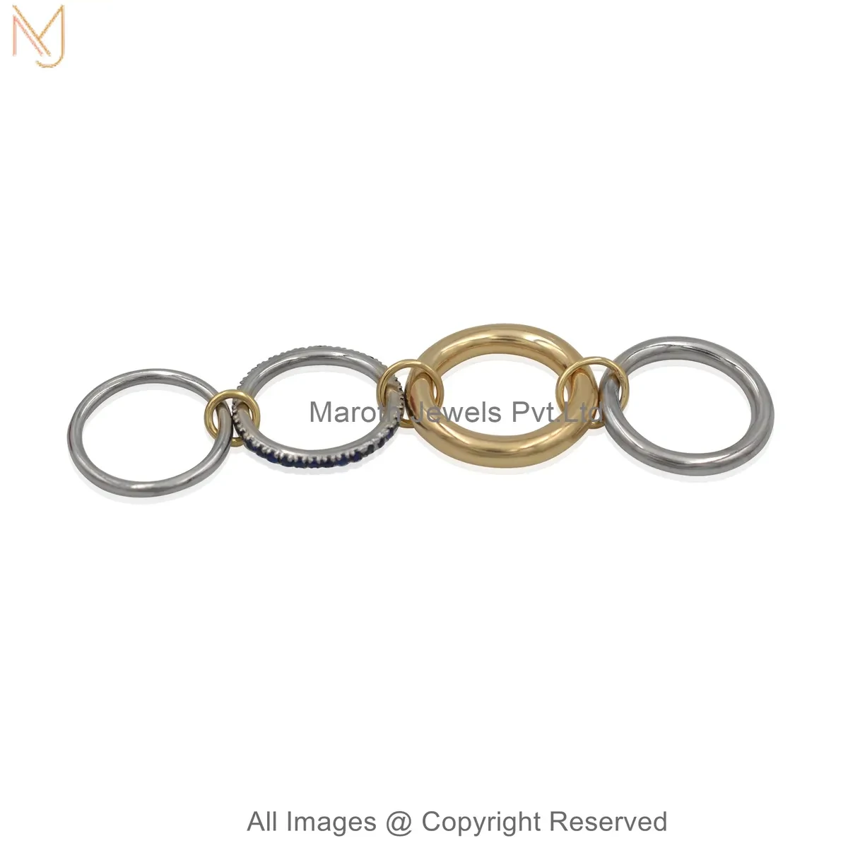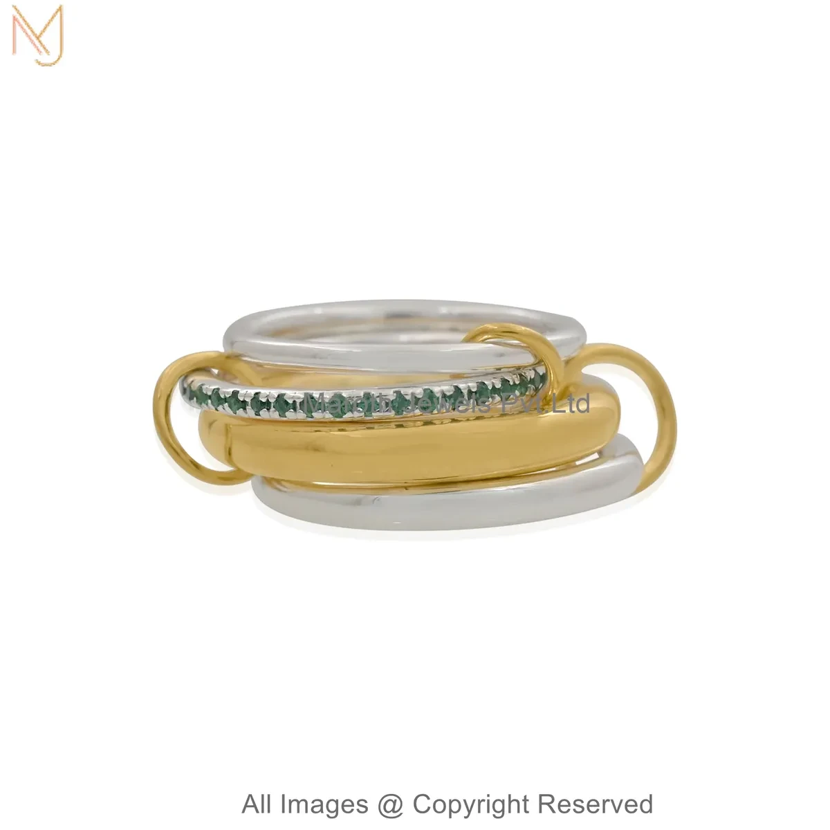 925 Silver Natural Silver Plated Diamond Cubic Zircon Gemstone Two Tone Multi Band Connector Ring USA