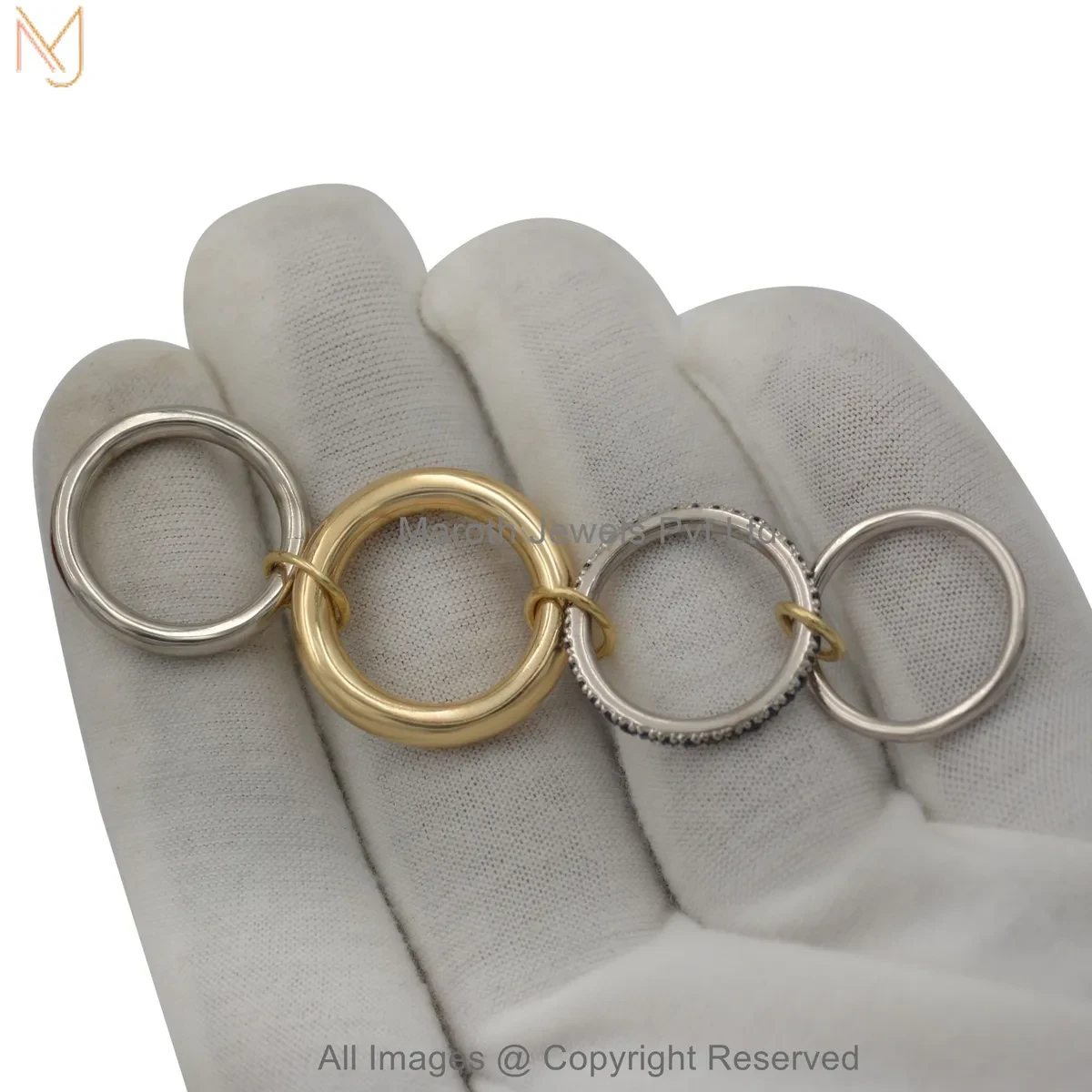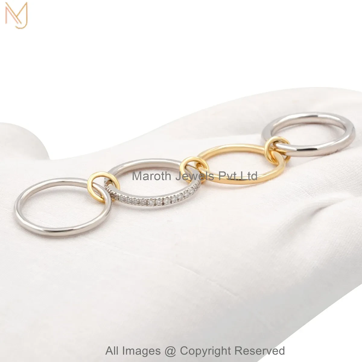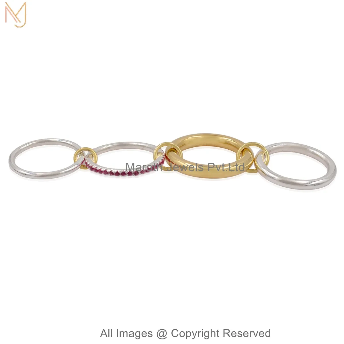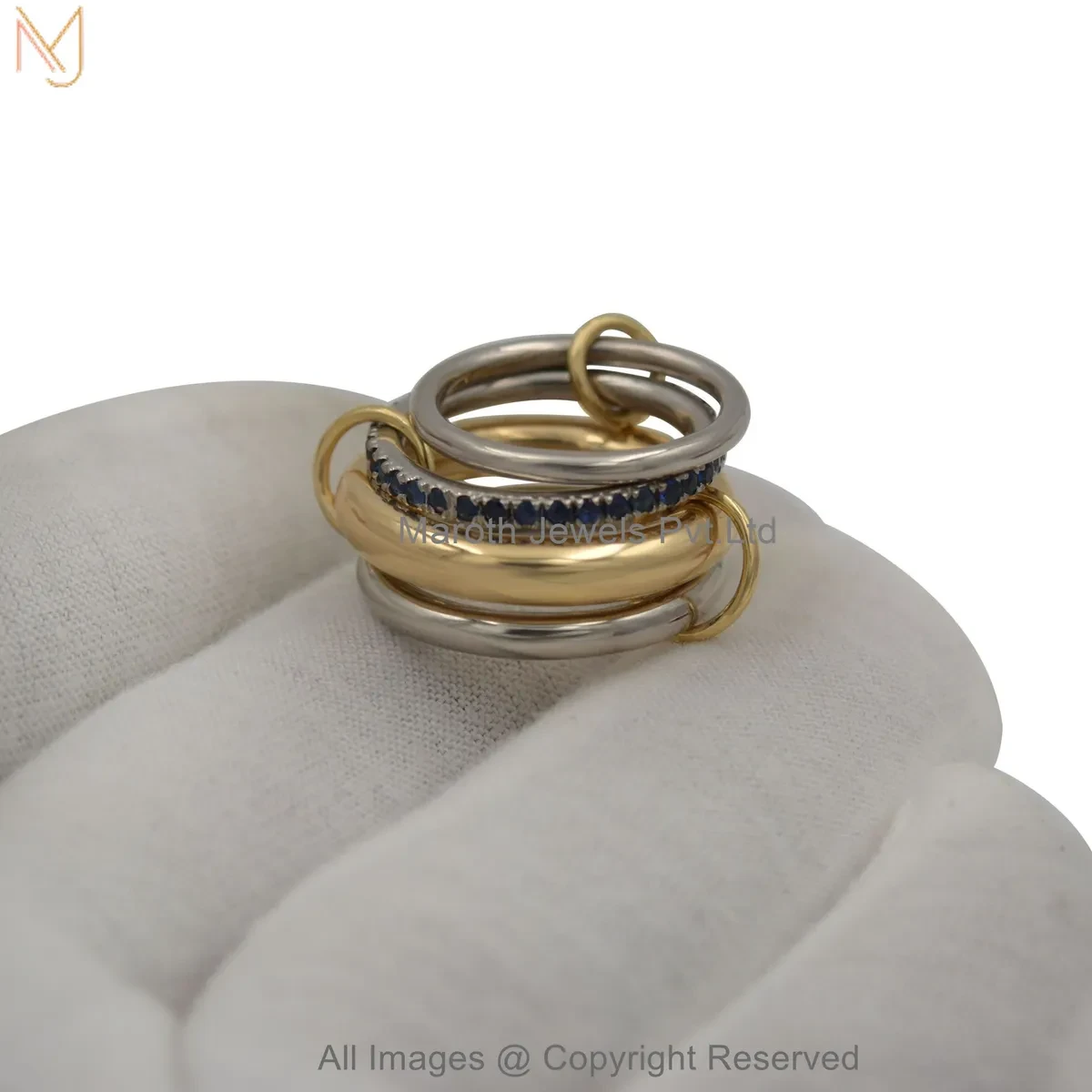 925 Silver Natural Silver Plated Diamond Cubic Zircon Gemstone Two Tone Multi Band Connector Ring USA
