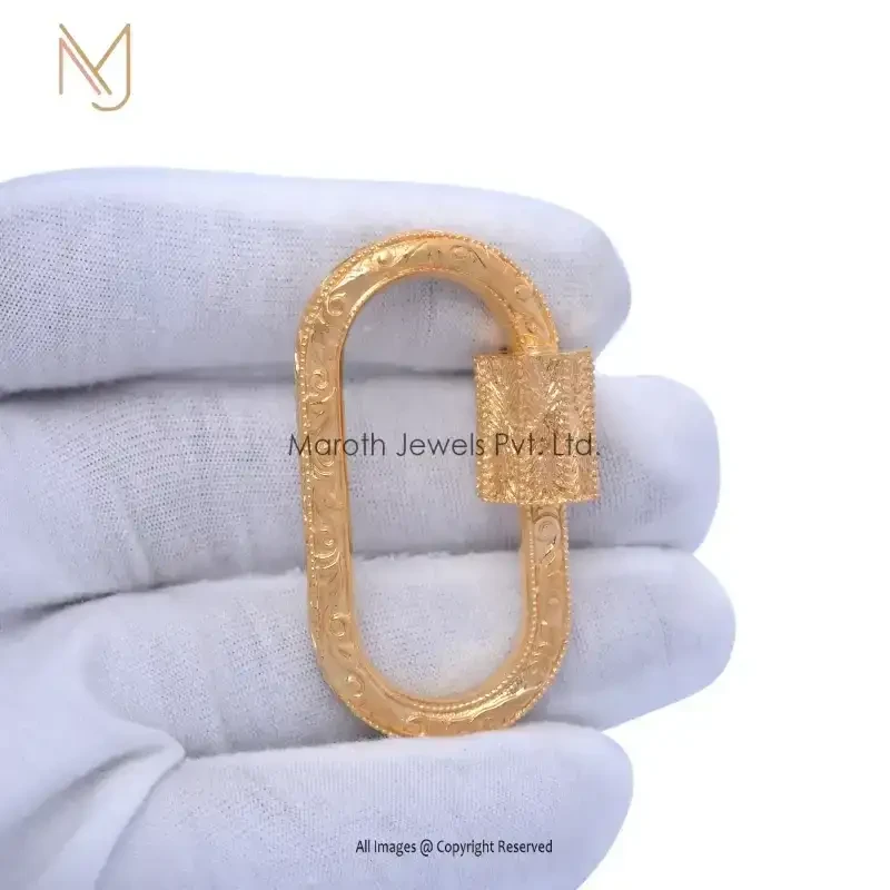 925 Silver Natural Silver Plated Engraved Carabiner Lock Custom Jewelry