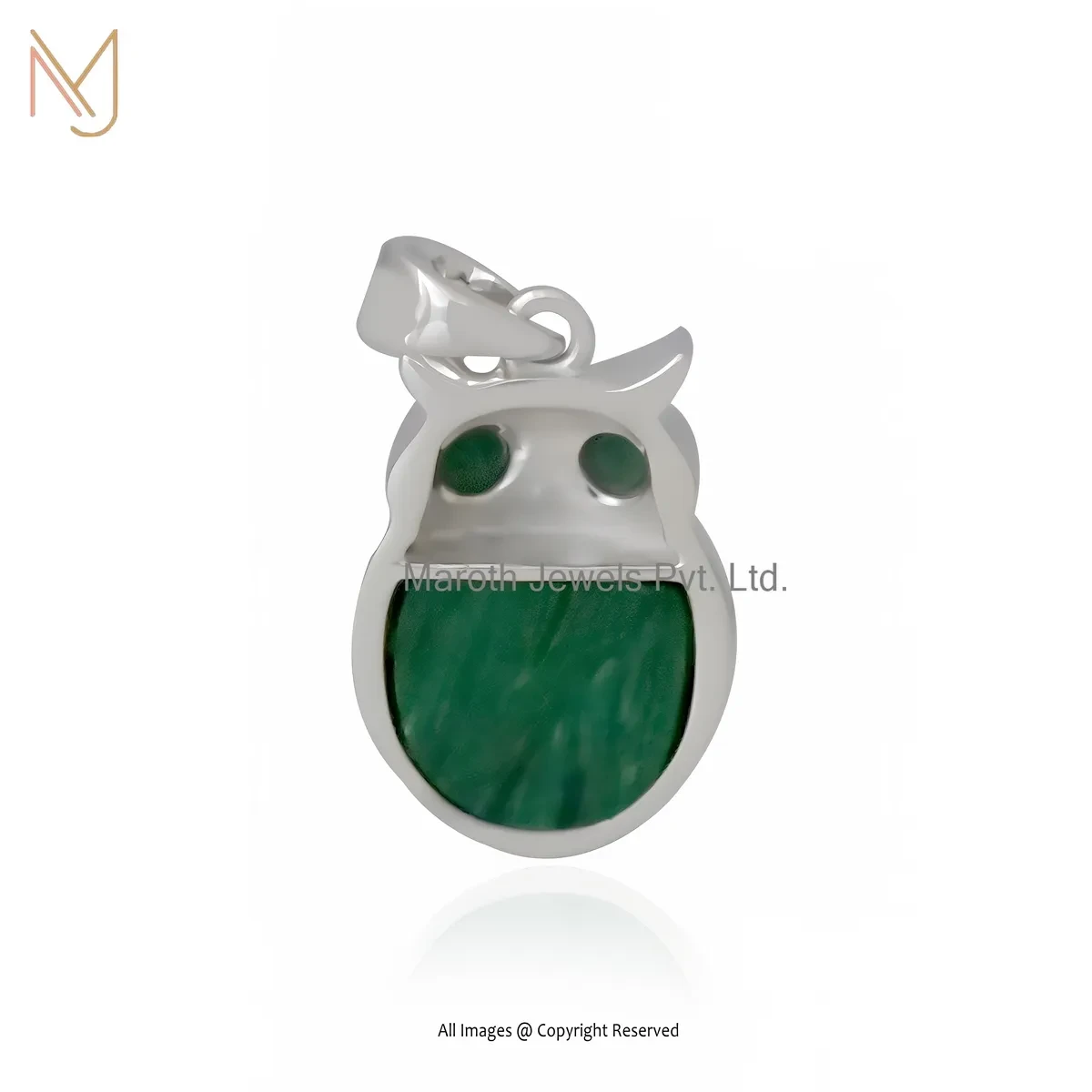 925 Silver Natural Silver Plated Malachite Owl Pendant Jewelry Supplier