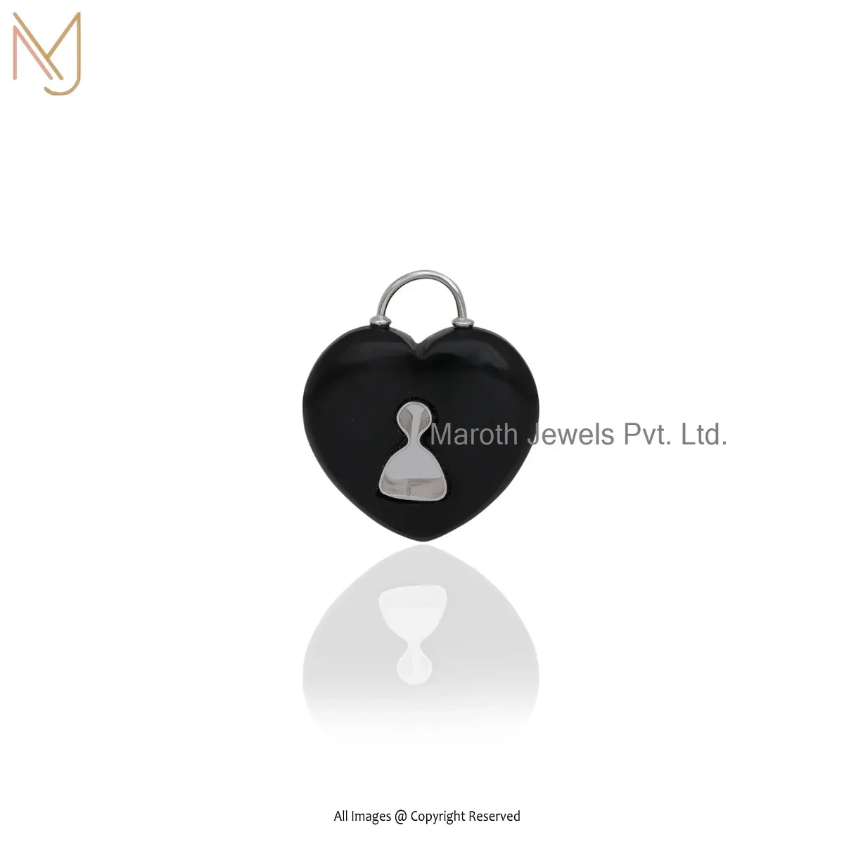 925 Silver Natural Silver Plated Moissanite & Black Onyx Gemstone Heart Pendant Custom Jewelry
