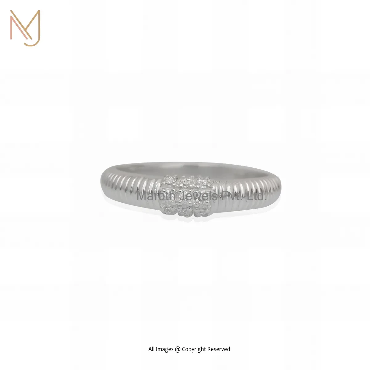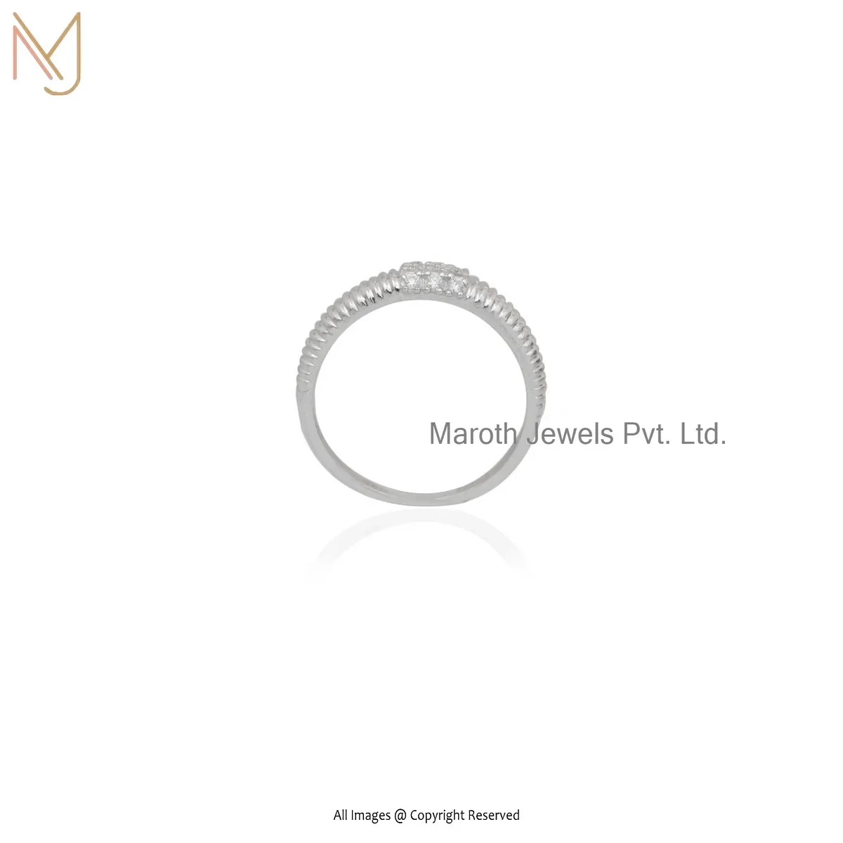 925 Silver Natural Silver Plated Moissanite Fluted Band Ring Custom Jewelry