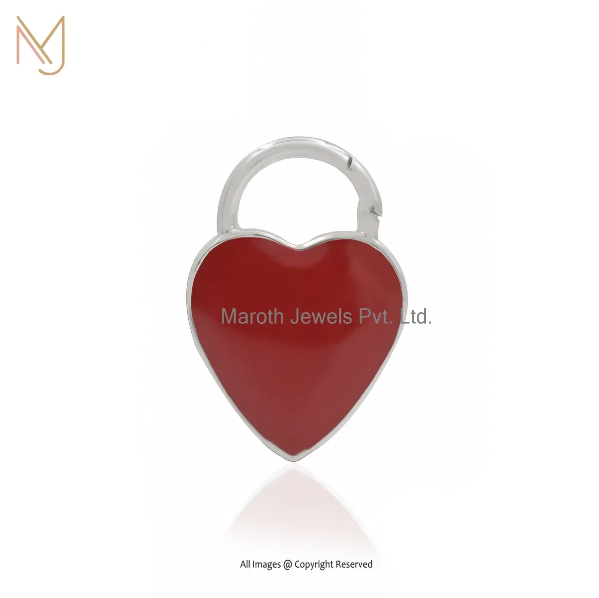 925 Silver Natural Silver Plated Red Enamel Heart Padlock Charm Holder Jewelry Supplier