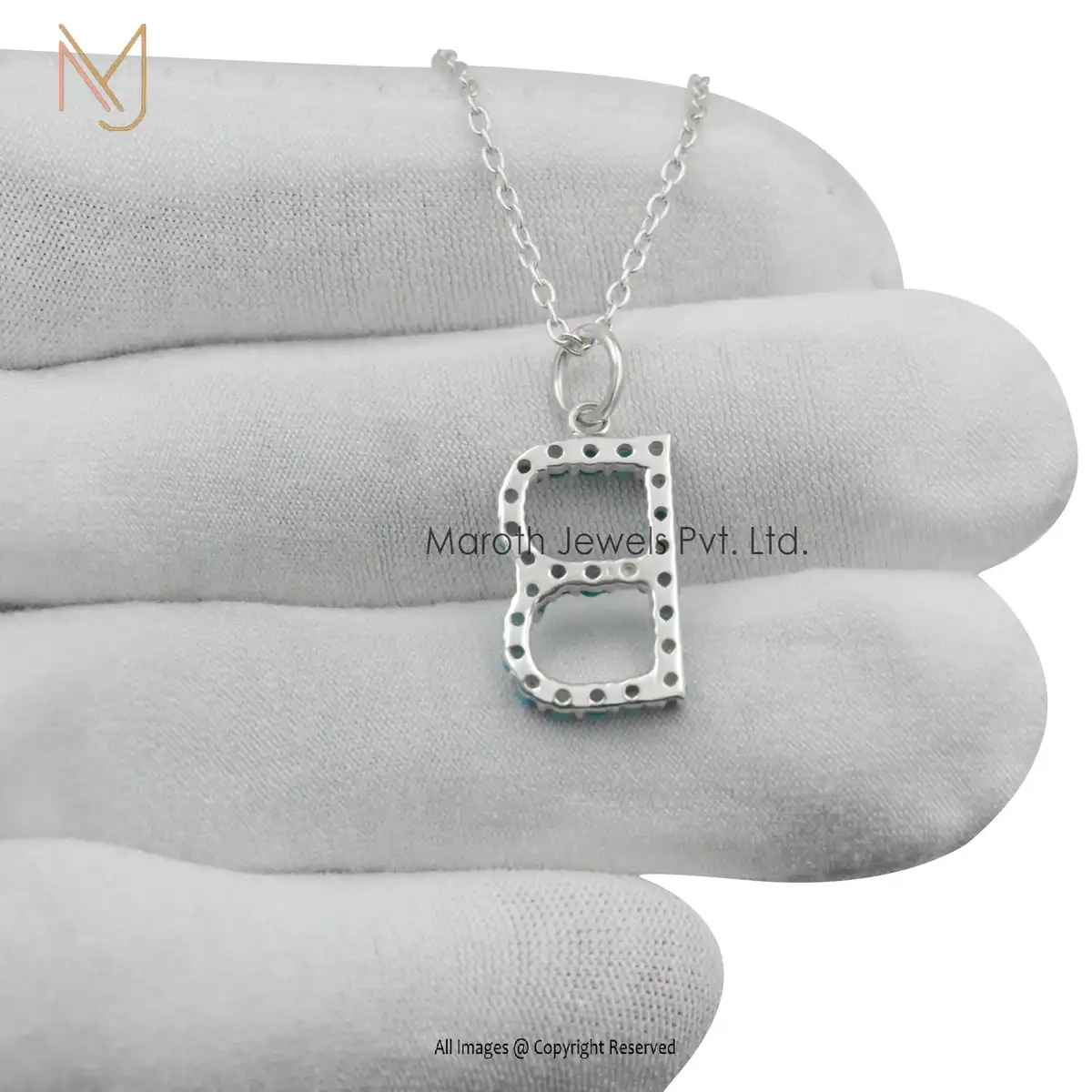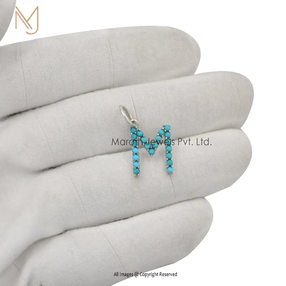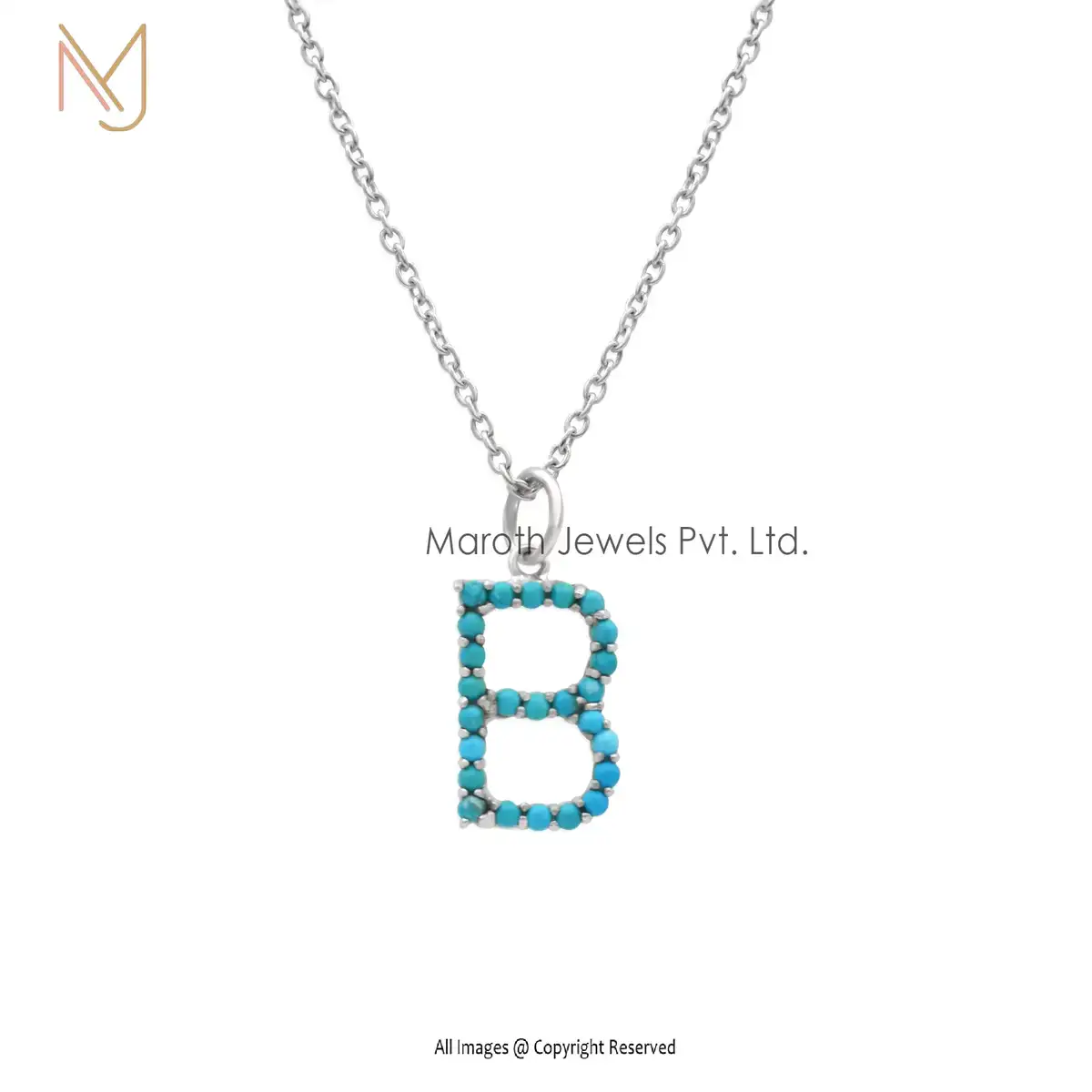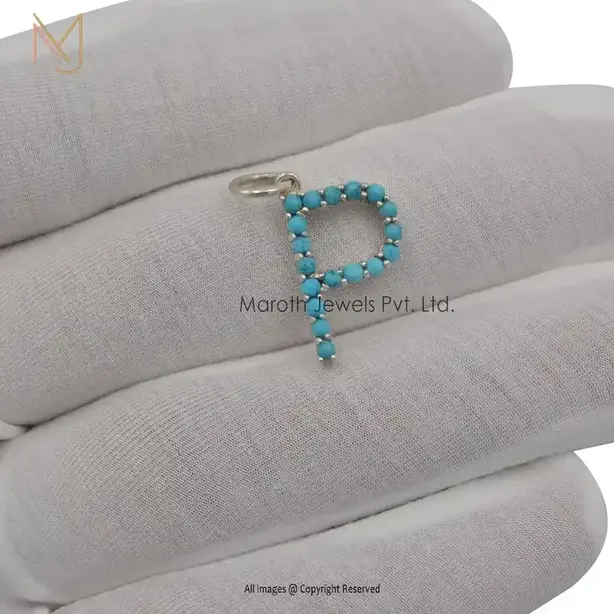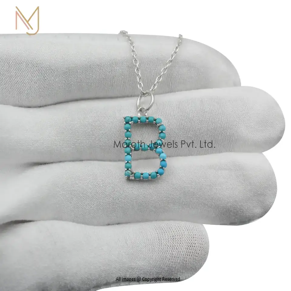 925 Silver Natural Silver Turquoise Gemstone B Letter Charms Manufacturer