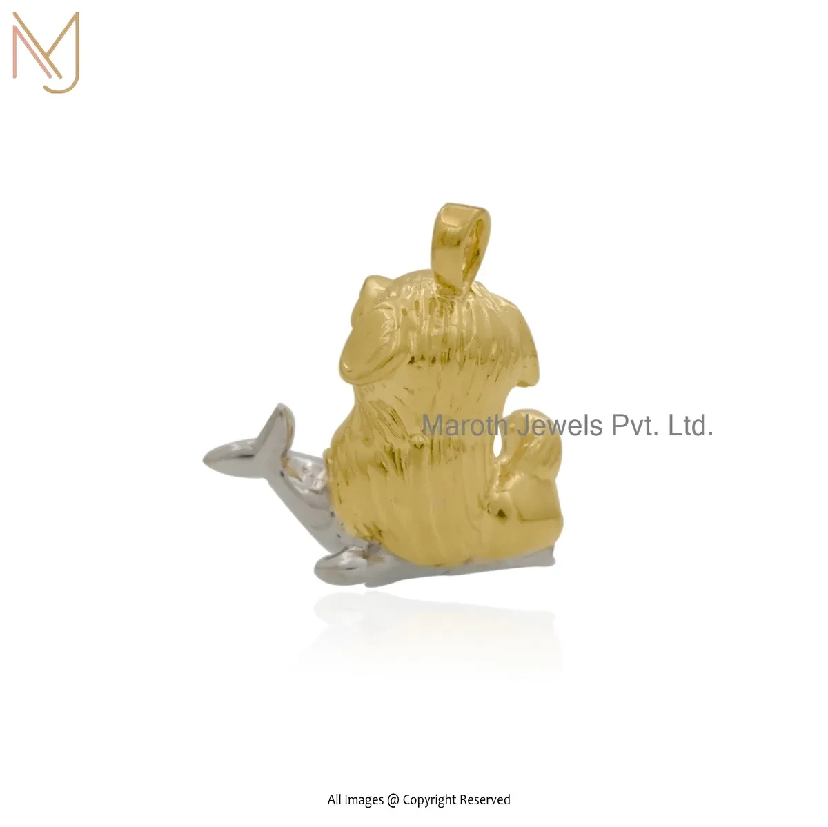 925 Silver Natural Silver & Yellow Gold Plated Baby Dolphin Pendant Custom Jewelry