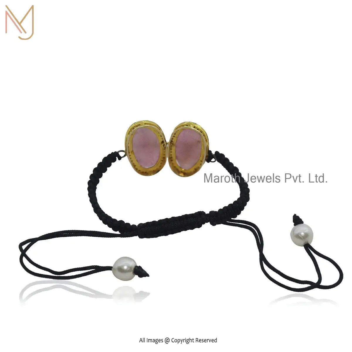 925 Silver Oxidized Yellow Gold Plated Pave Diamond Pink Quartz Bracelet USA