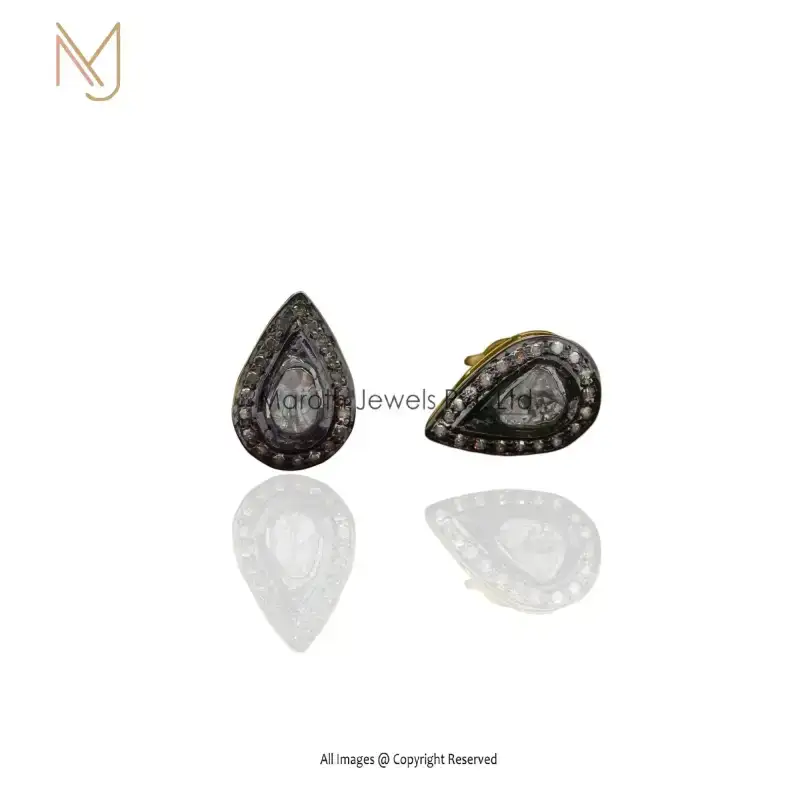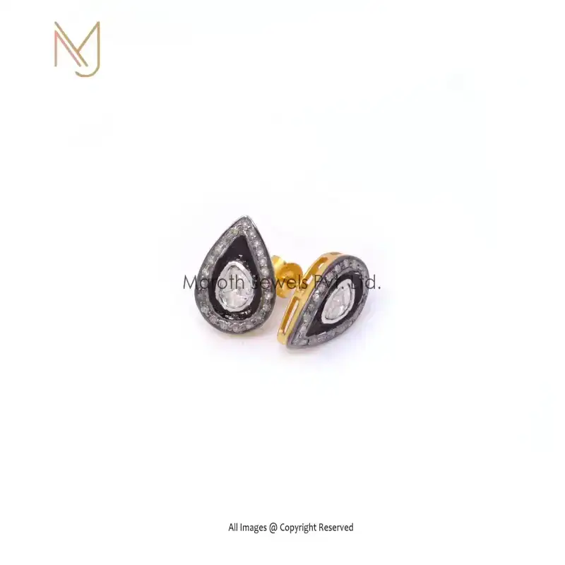 925 Silver Pave Diamond And Rose Cut Polki Diamond Drop Stud Earrings Manufacturer