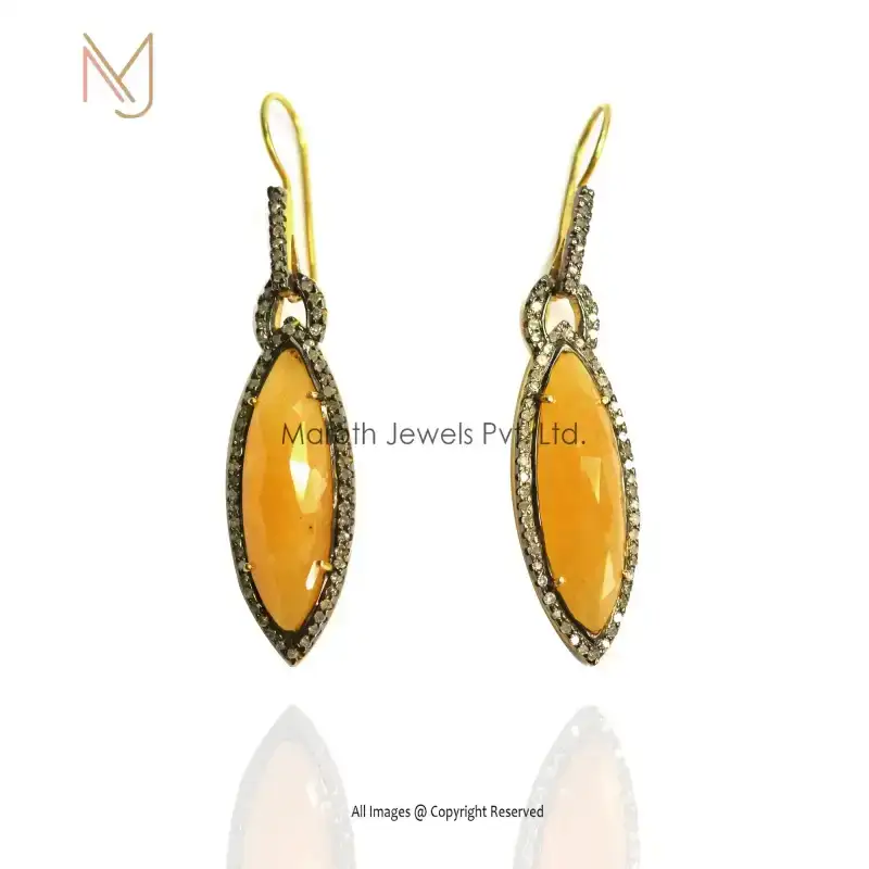 925 Silver Pave Diamond And Yellow Sapphire Gemstone Dangle Earring Custom Jewelry