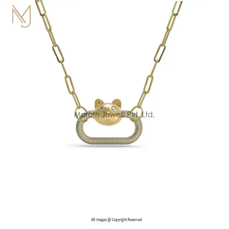 925 Silver Pave Diamond Cat Animal Carabiner Lock Handmade Jewelry USA