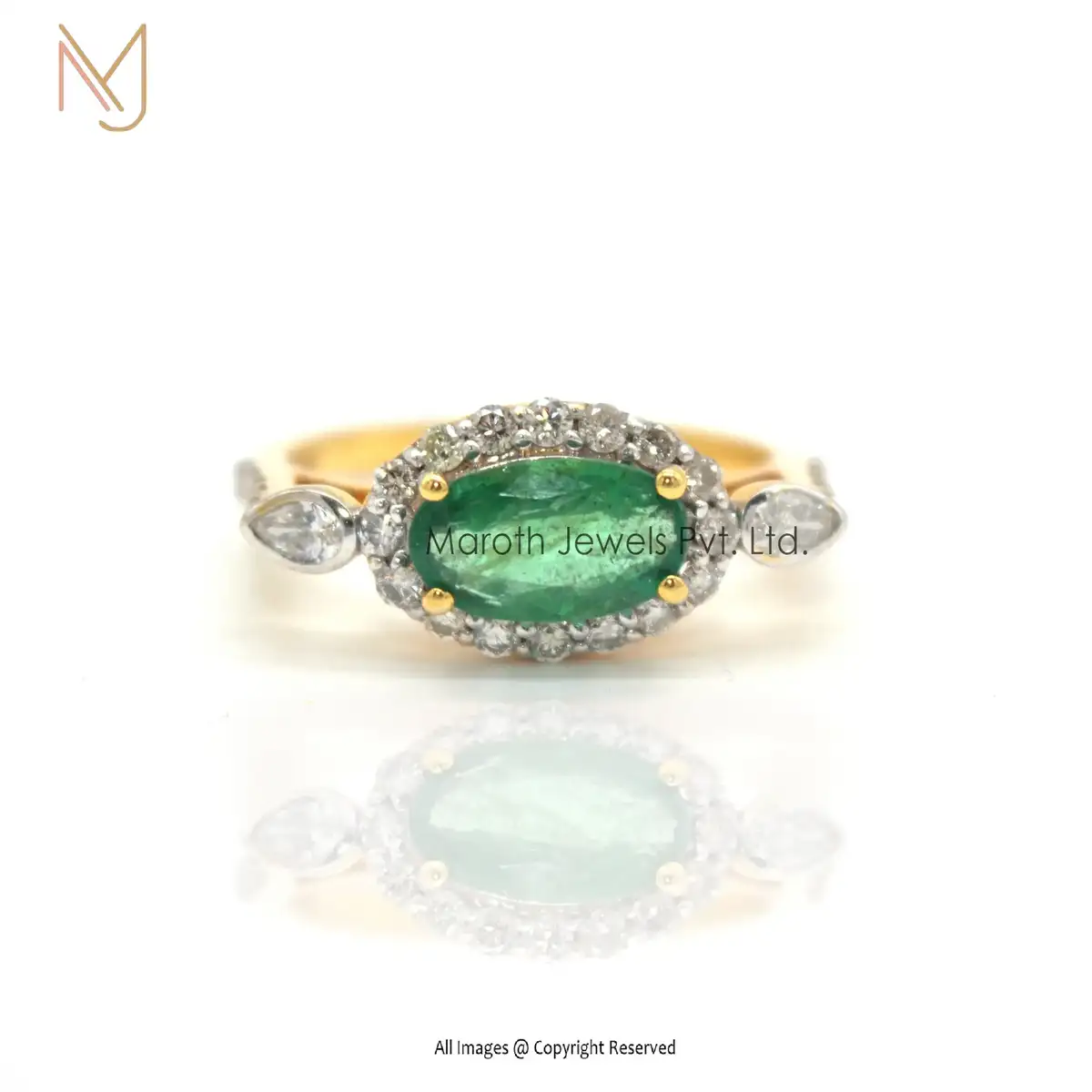 925 Silver Pave Diamond Emerald Gemstone Oval Ring Jewelry Manufacturer