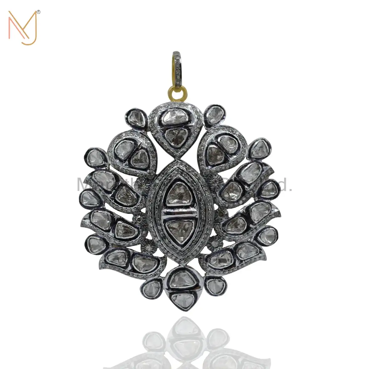 925 Silver Rhodium Designer Rose Cut Diamond Pendant Handmade Jewelry USA