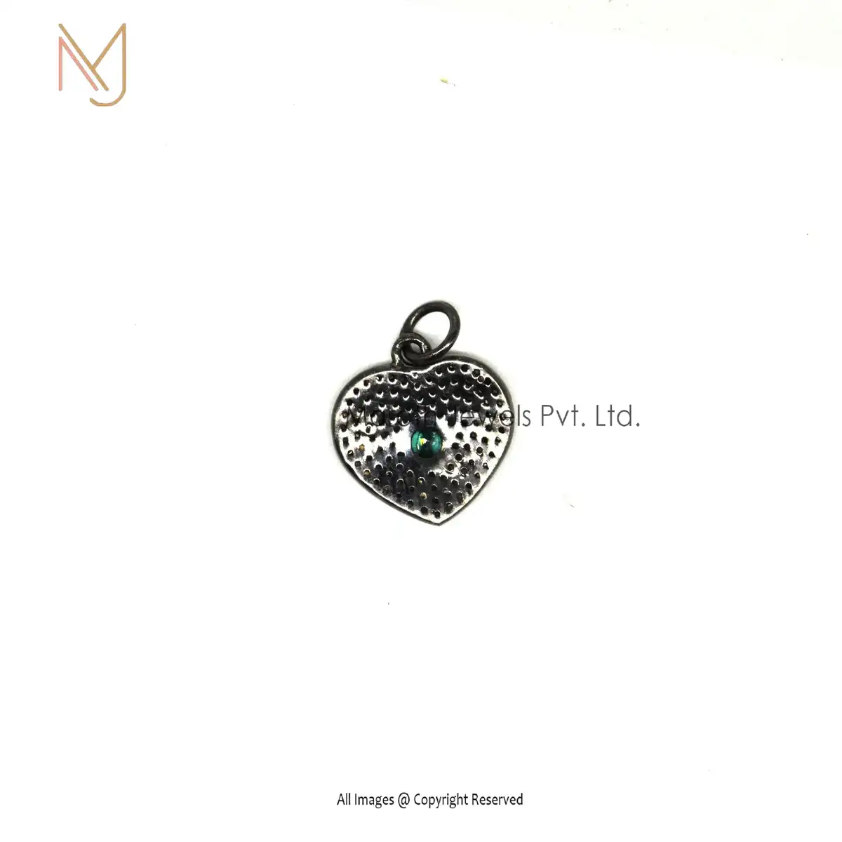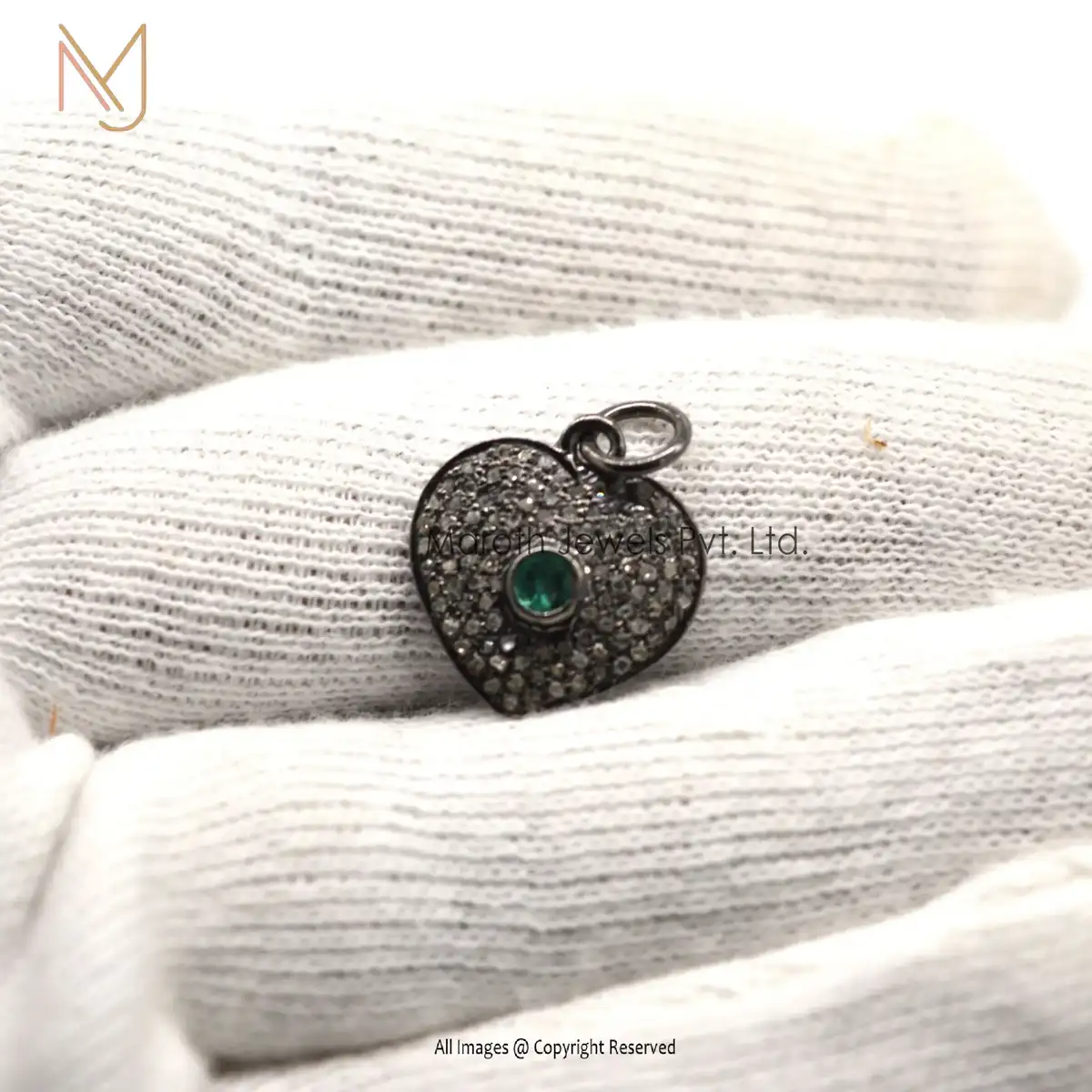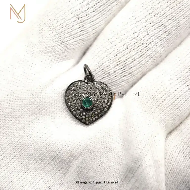 925 Silver Rhodium Pave Diamond And Emerald Gemstone Heart Charm Pendant Manufacturer