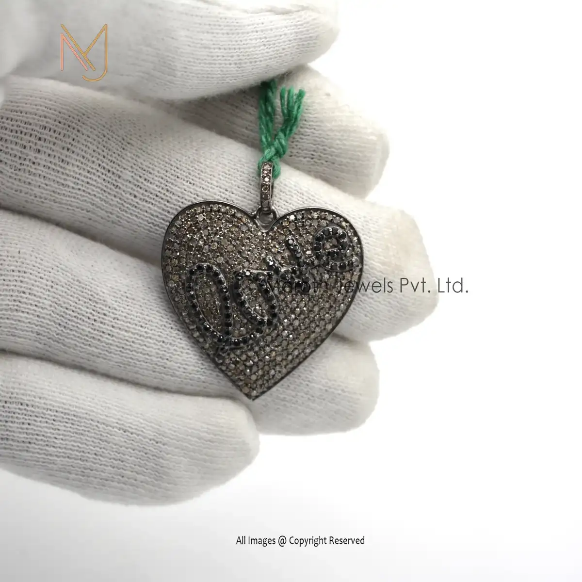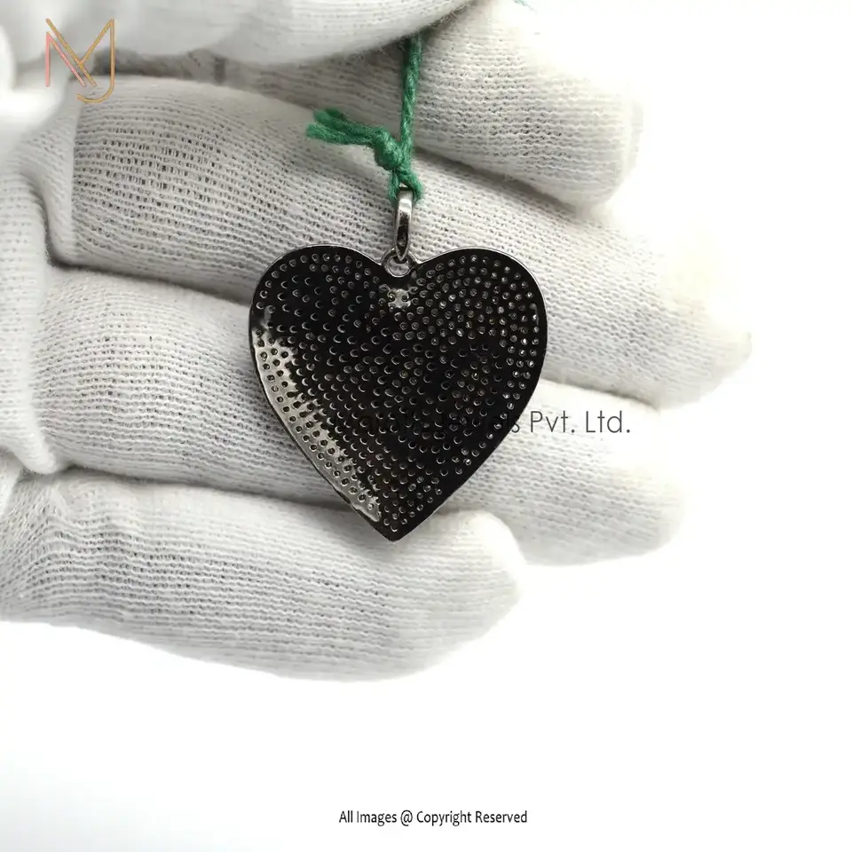 925 Silver Rhodium Plated Black Diamond Lover IN Heart Silver Pendant USA