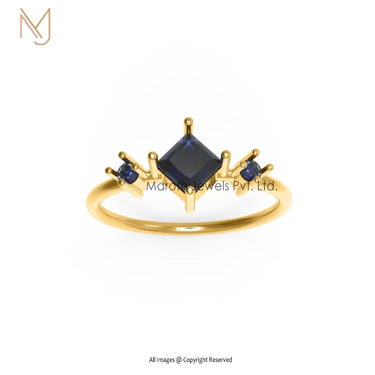 925 Silver Rhodium Plated Blue Sapphire Gemstone Ring Jewelry Manufacturer