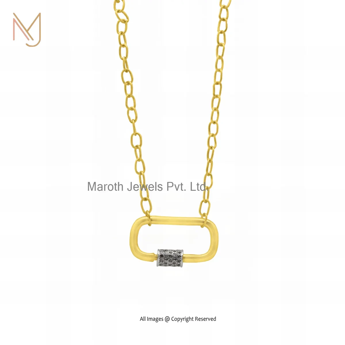 925 Silver Rhodium Plated Cubic Zircon And Amethyst Lock Finding Chain Necklace Carabiner Lock USA