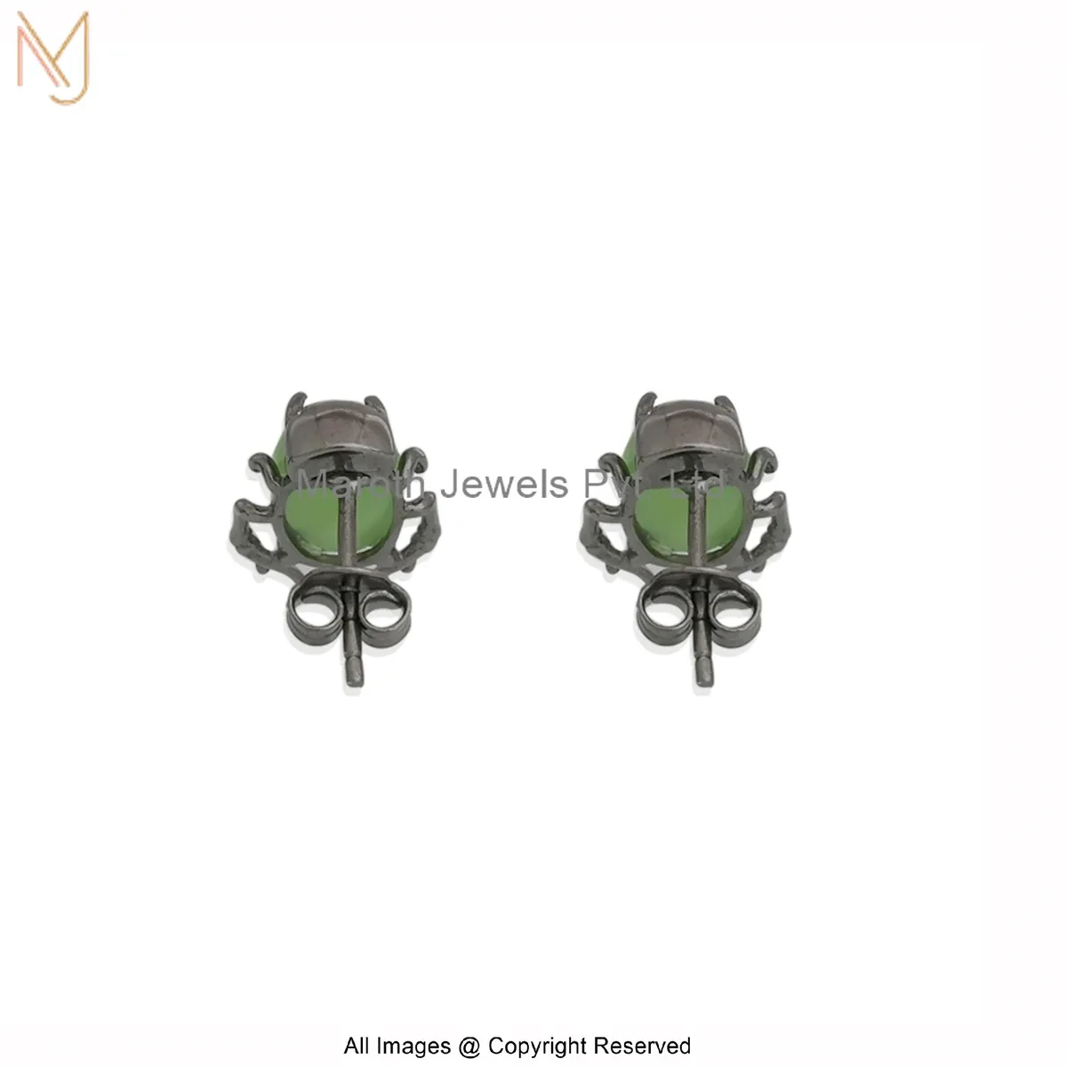 925 Silver Rhodium Plated Cubic Zircon Green Scarab Gem Stud Earrings Manufacturer