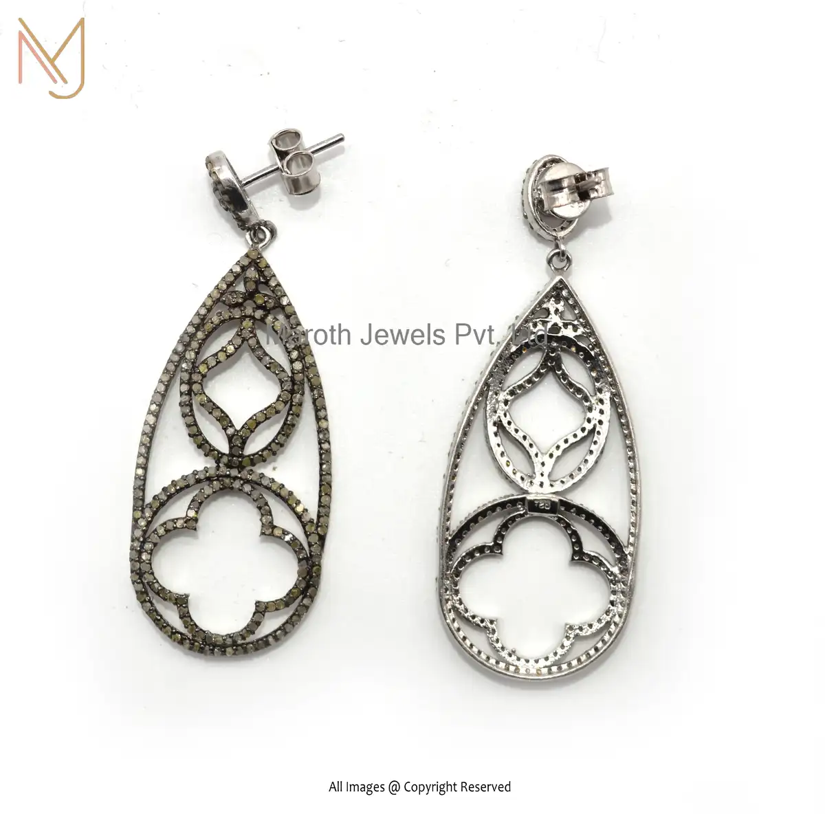 925 Silver Rhodium Plated Pave Diamond Clover Drop Earring Custom Jewelry