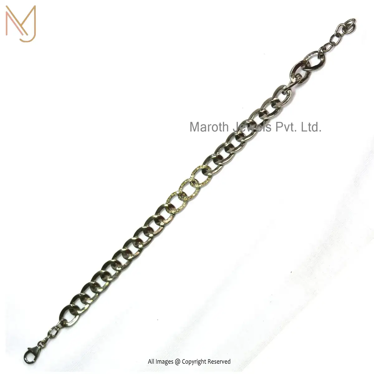 925 Silver Rhodium Plated Pave Diamond Link Adjustable Chain Bracelet USA