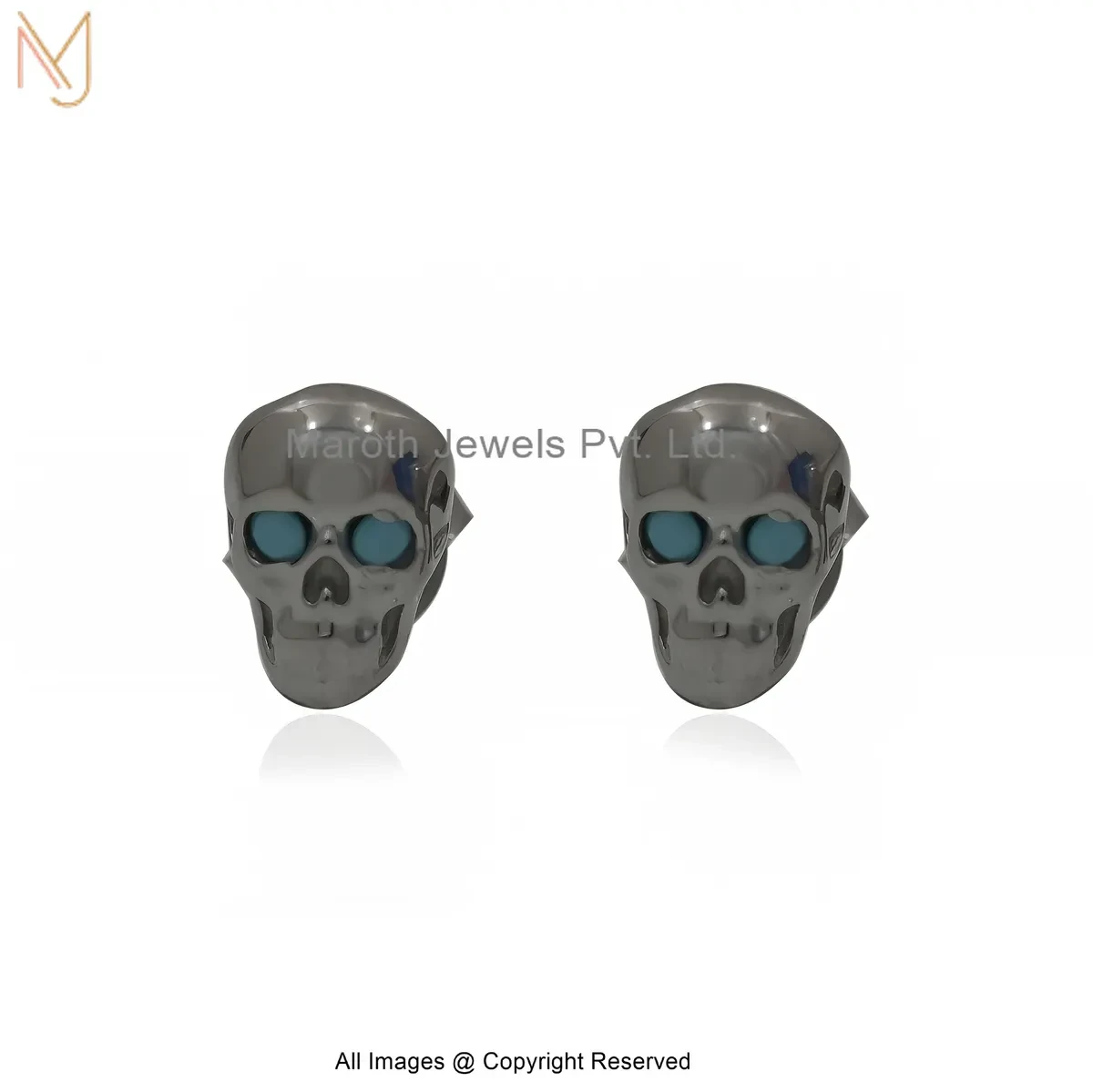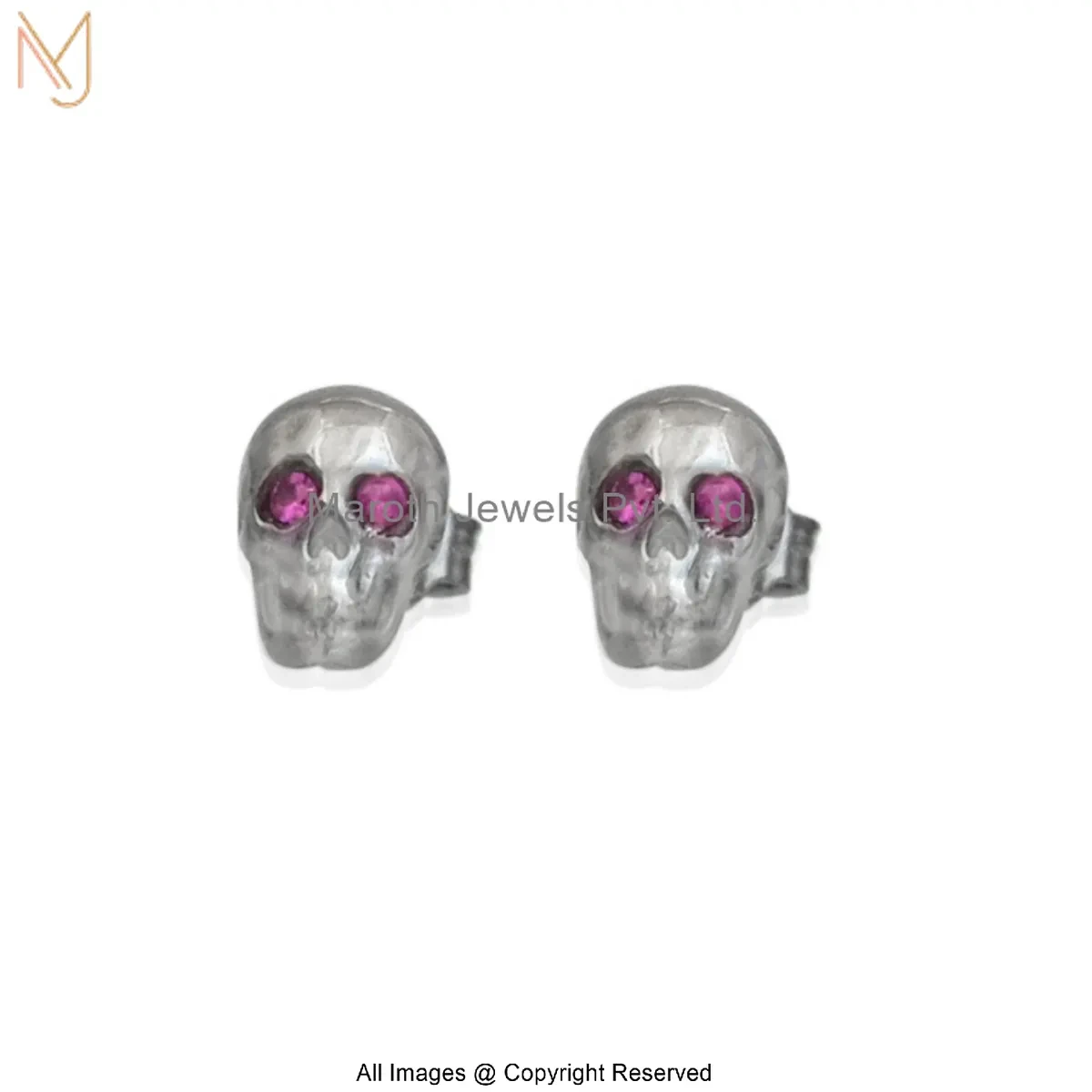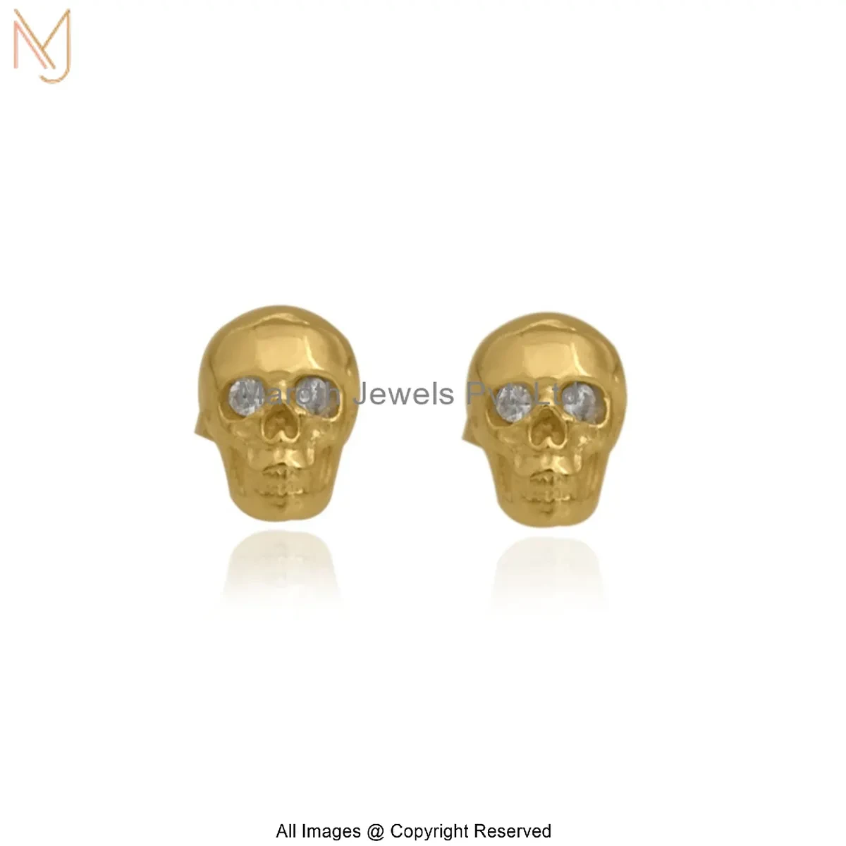 925 Silver Rhodium White Gold Plated Diamond Skull Stud Earring Manufacturer