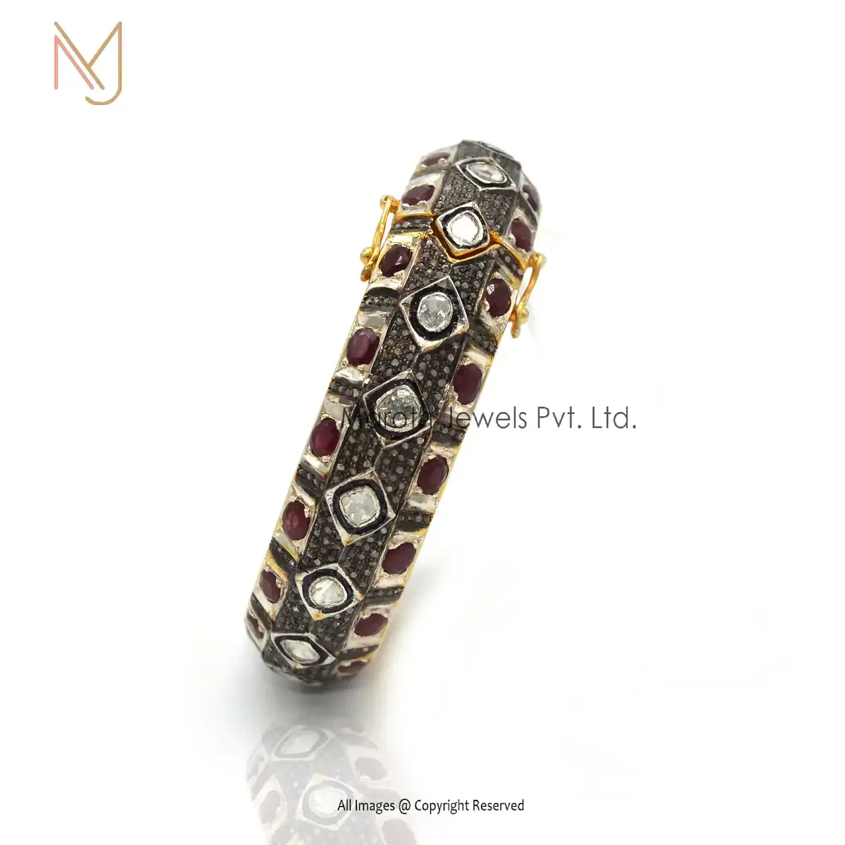 925 Silver Rhodium Yellow Gold Victorian Ruby Gemstone & Rose Cut Diamond Bangle Jewelry Manufacturer