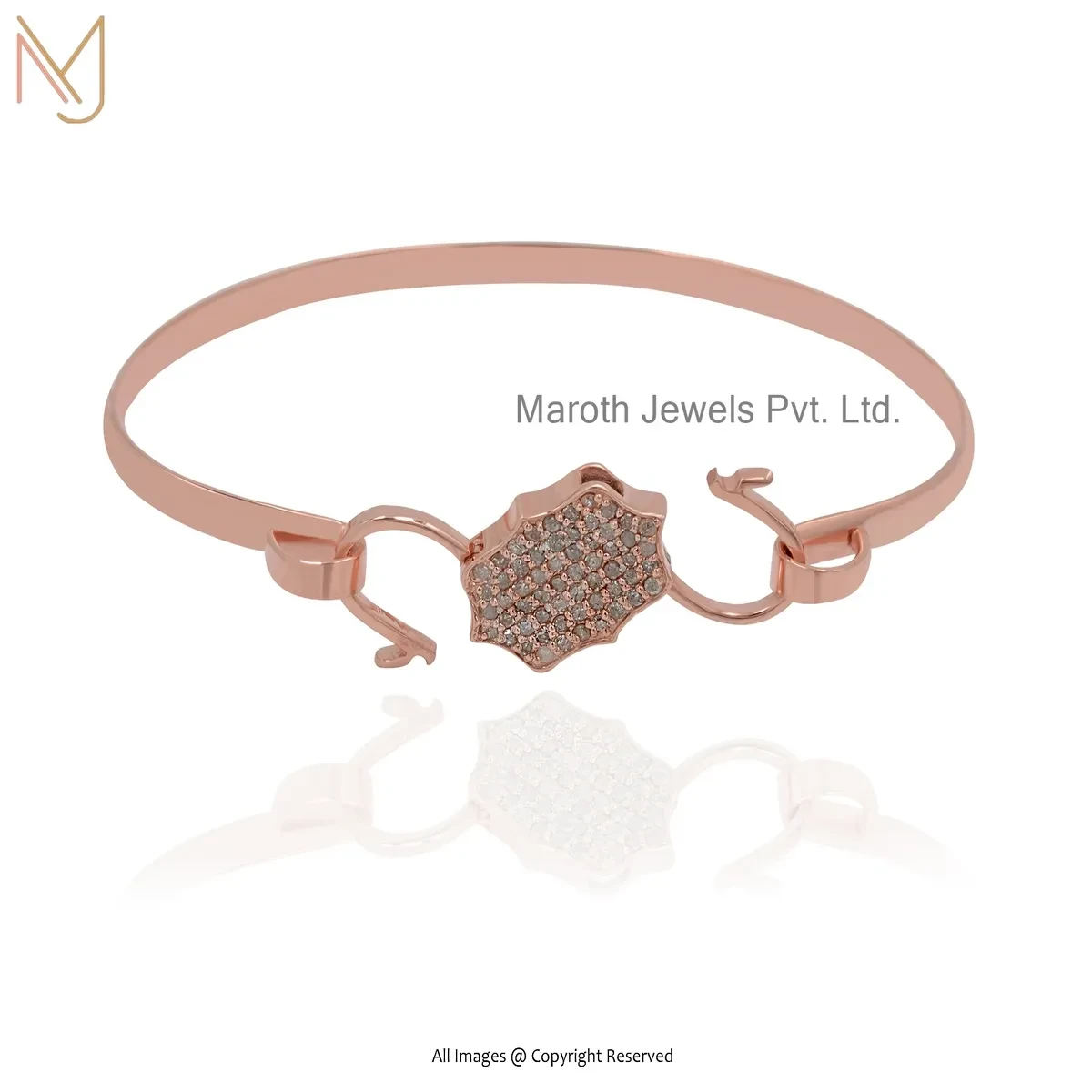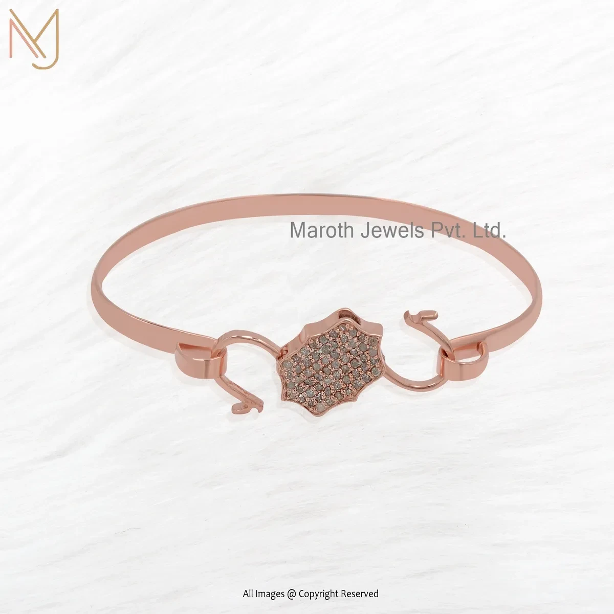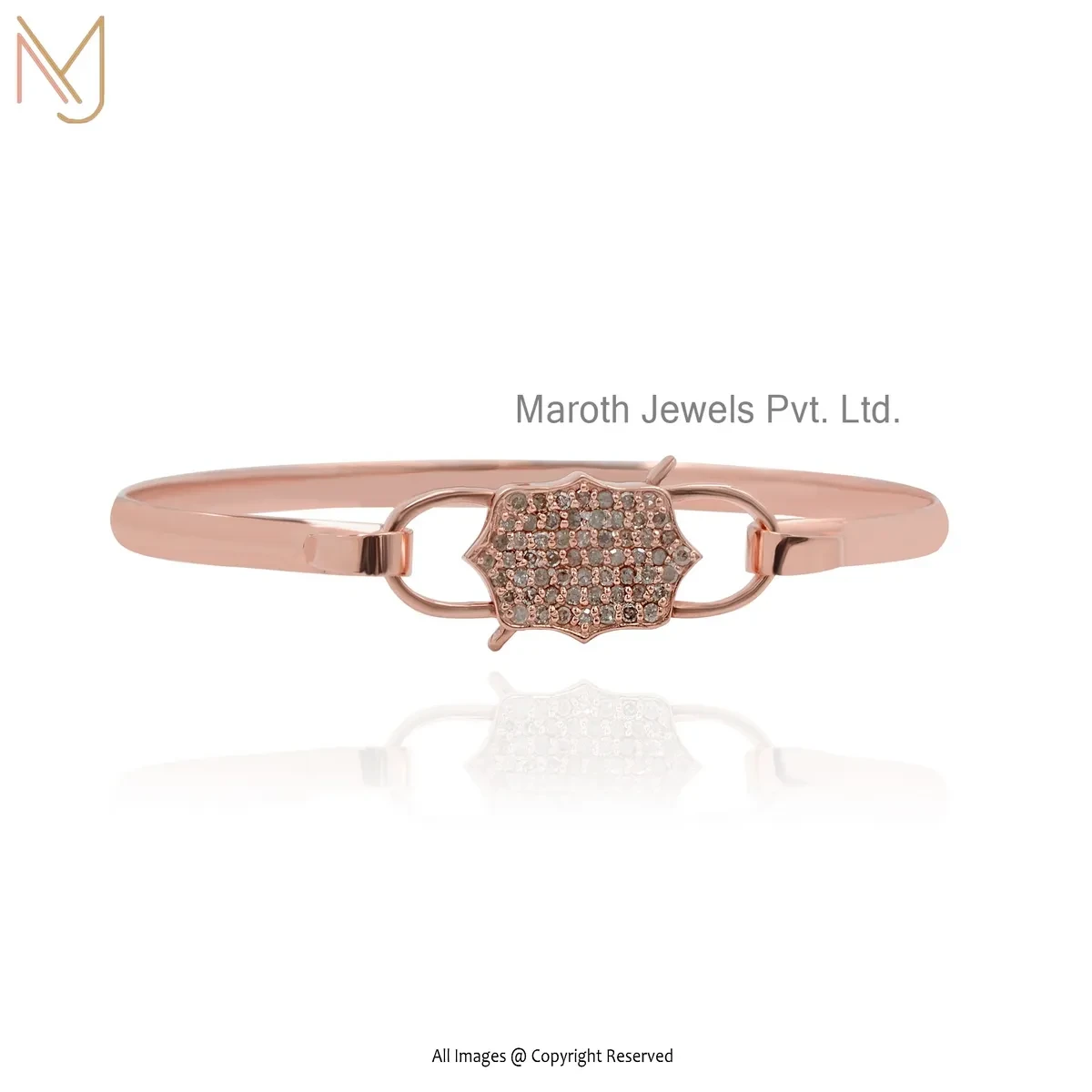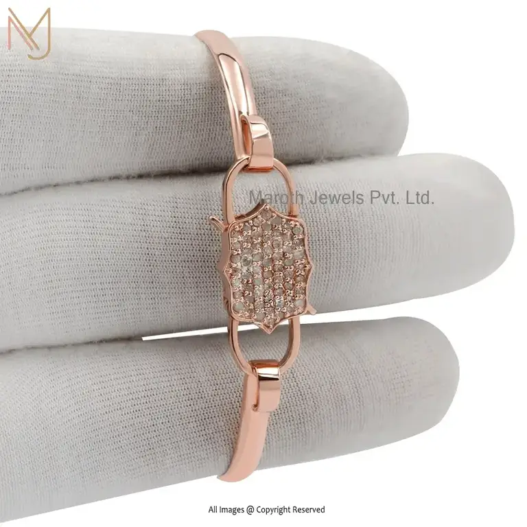 925 Silver Rose Gold Plated Cubic Zircon Padlock Bangle Manufacturer