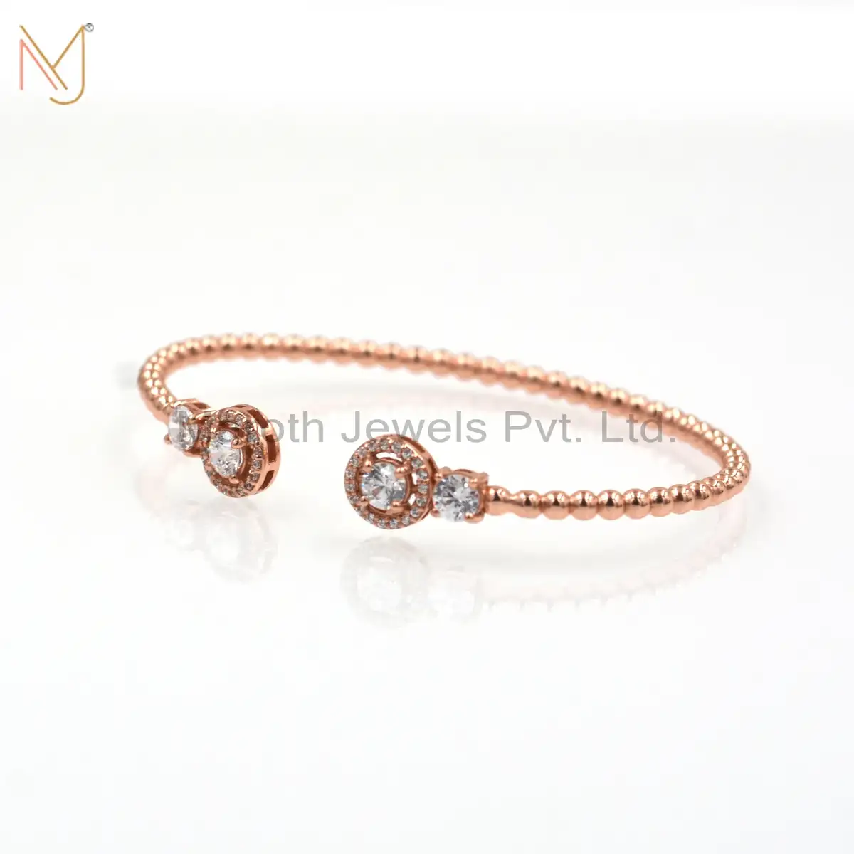 925 Silver Rose Gold Plated CZ Bangle With Ecoating Jewelry Supplier