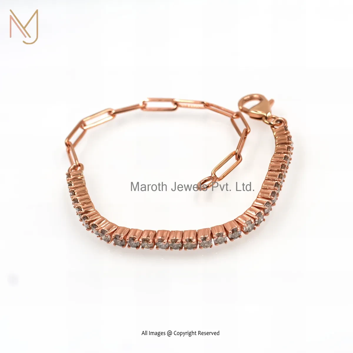 925 Silver Rose Gold Plated Diamond Paperclip Half Tennis Bracelet Manufacturer