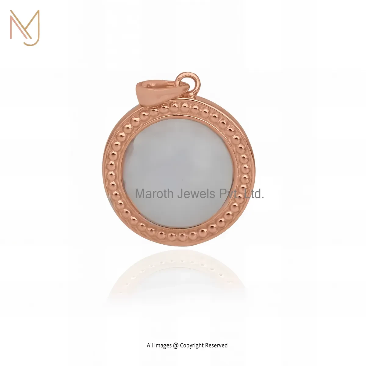 925 Silver Rose Gold Plated Rainbow Moonstone Round Pendant Jewelry Supplier