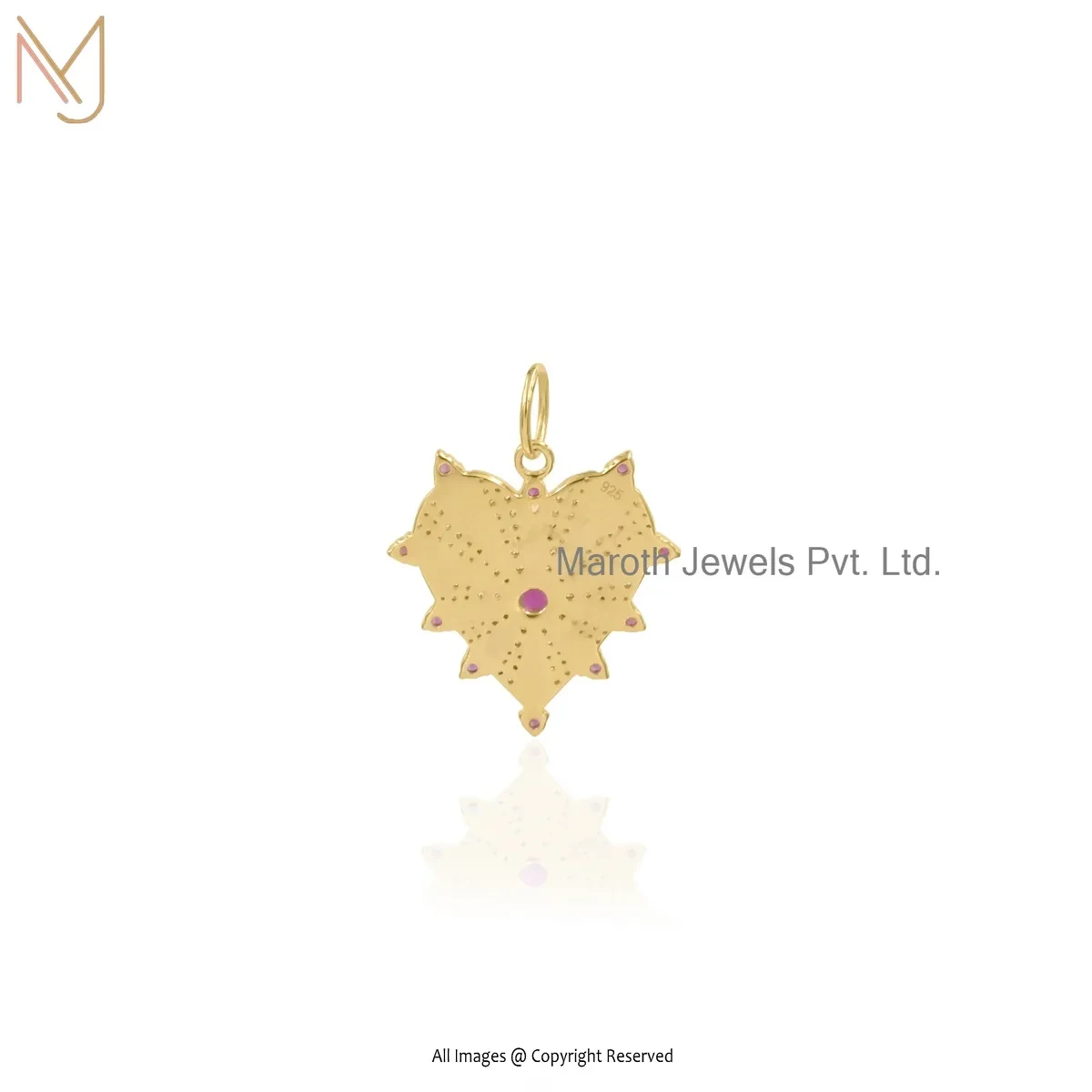 925 Silver Rose Gold Plated Ruby & Moissanite Heart Pendant Jewelry Supplier