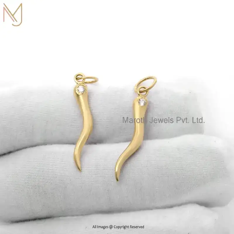 925 Silver Rose Gold Plated VS Diamond Italian Horn Charm Pendant Manufacturer