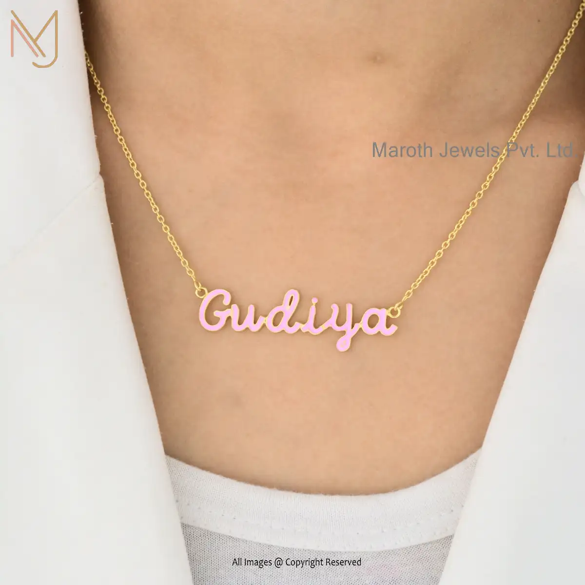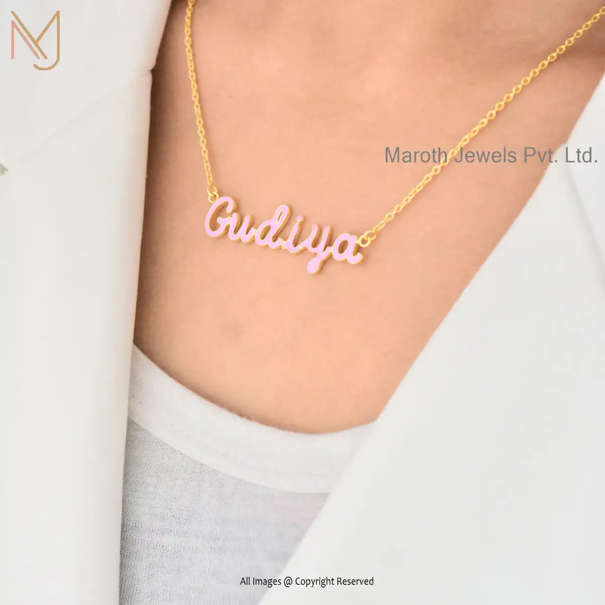 925 Silver Rose Gold Vermeil Script Enamel Nameplate Necklace Jewelry Manufacturer
