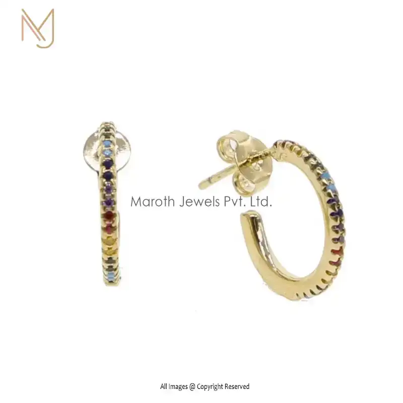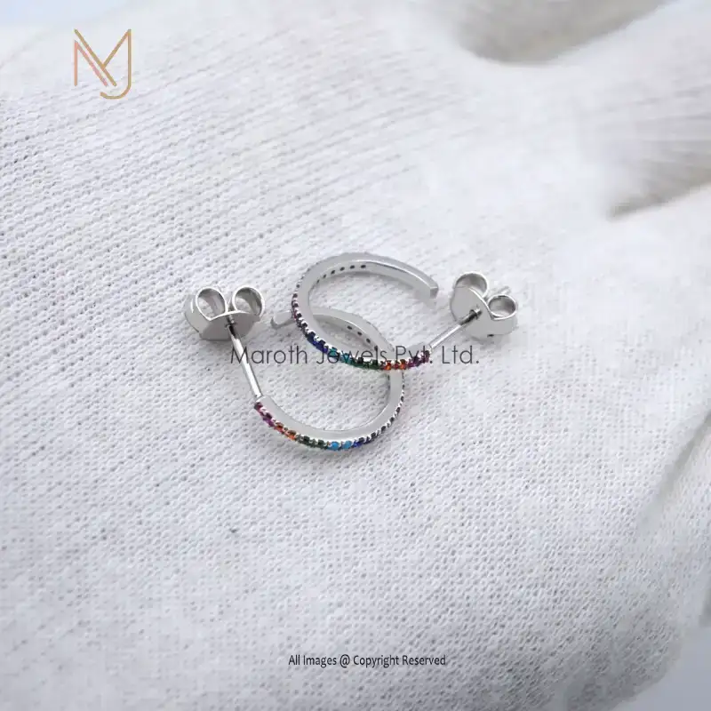 925 Silver White Gold Multi Color Stone Hoops Earrings Jewelry Manufacturer