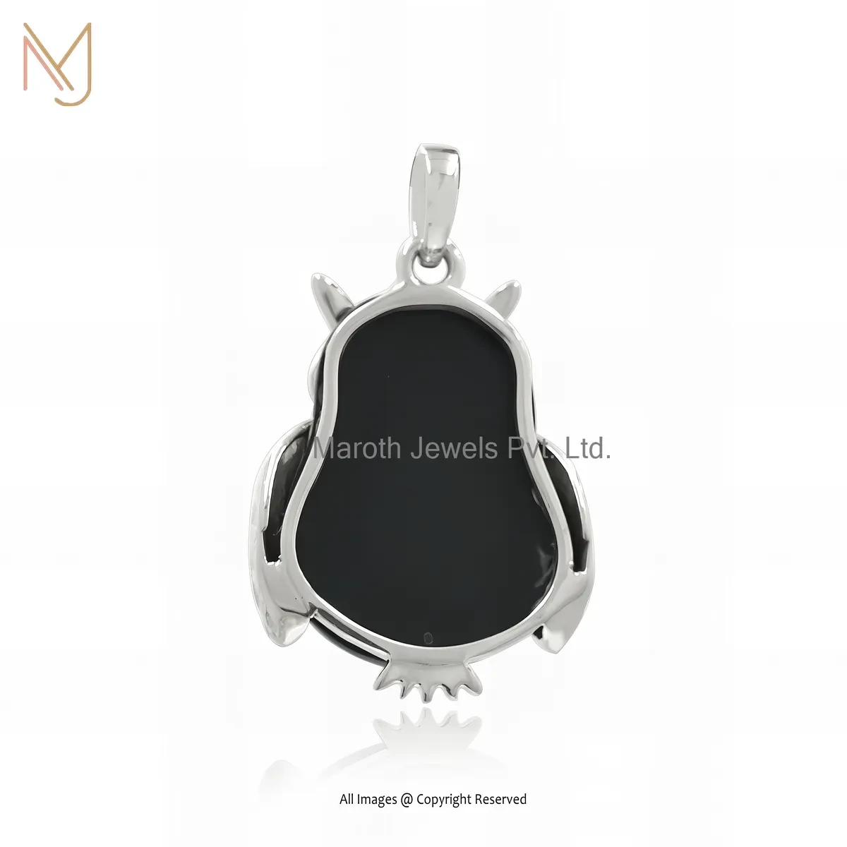 925 Silver White Gold Plated Black Onyx Gemstone Owl Pendant Jewelry Supplier