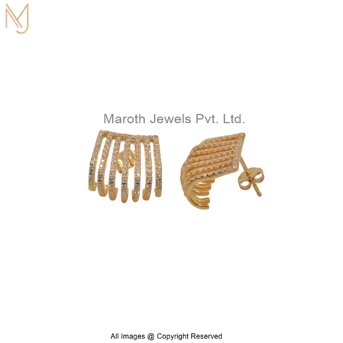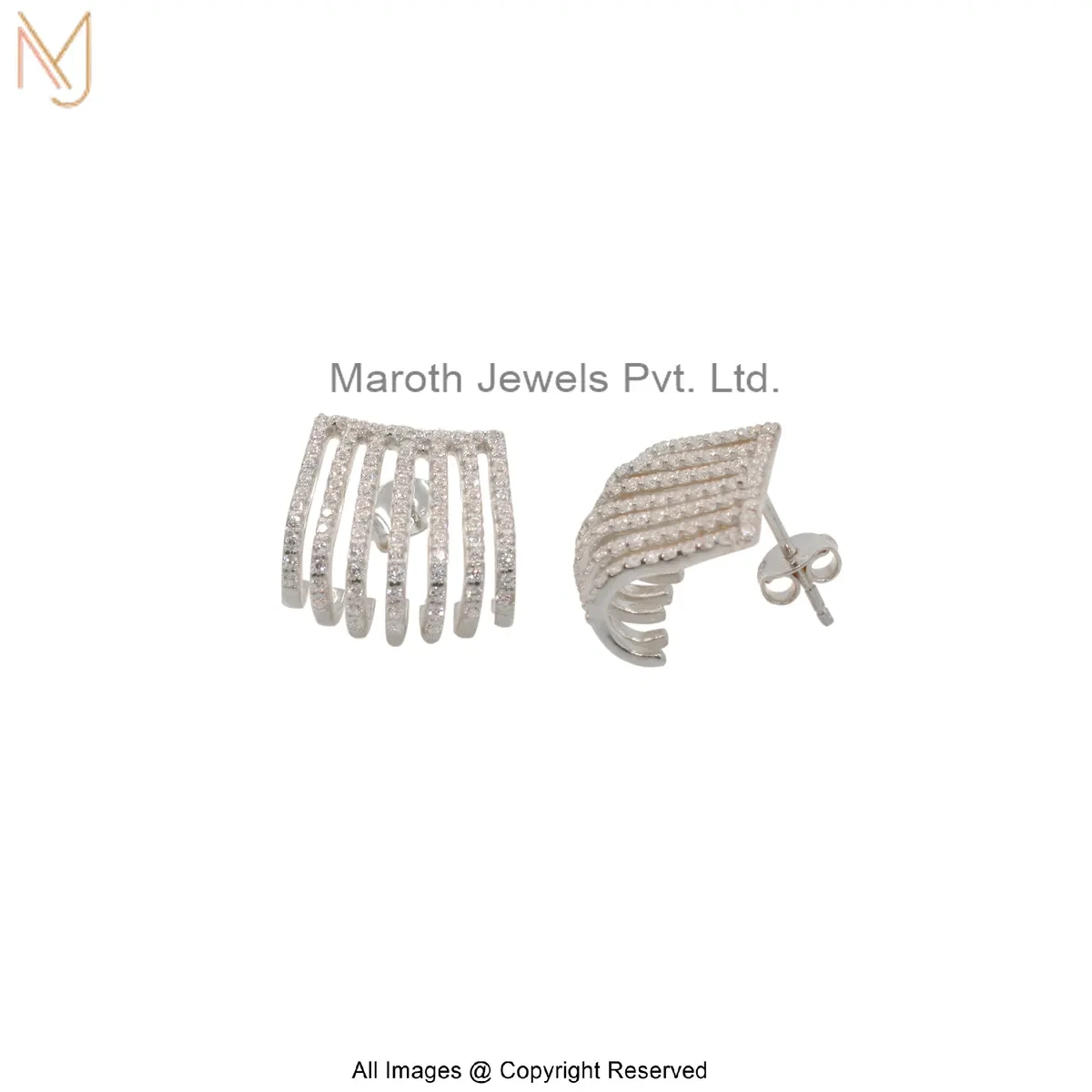 925 Silver White Gold Plated Cubic Zircon Multi-Row Ear Cuff Earring Custom Jewelry