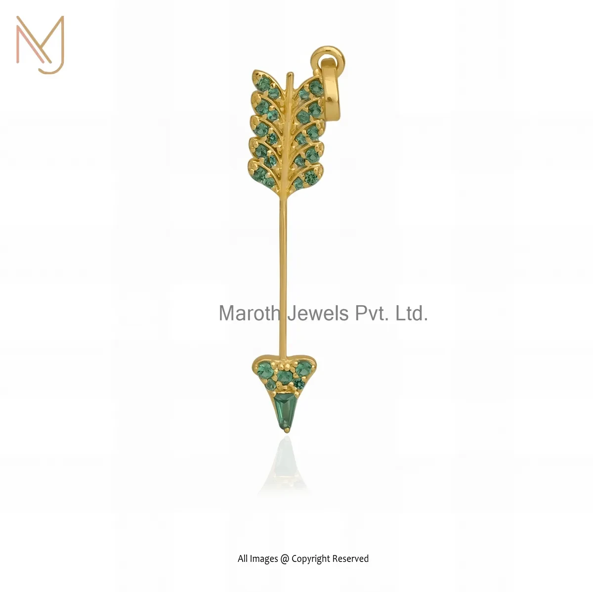 925 Silver White Gold Plated Green Sapphire Arrow Pendant Jewelry Supplier