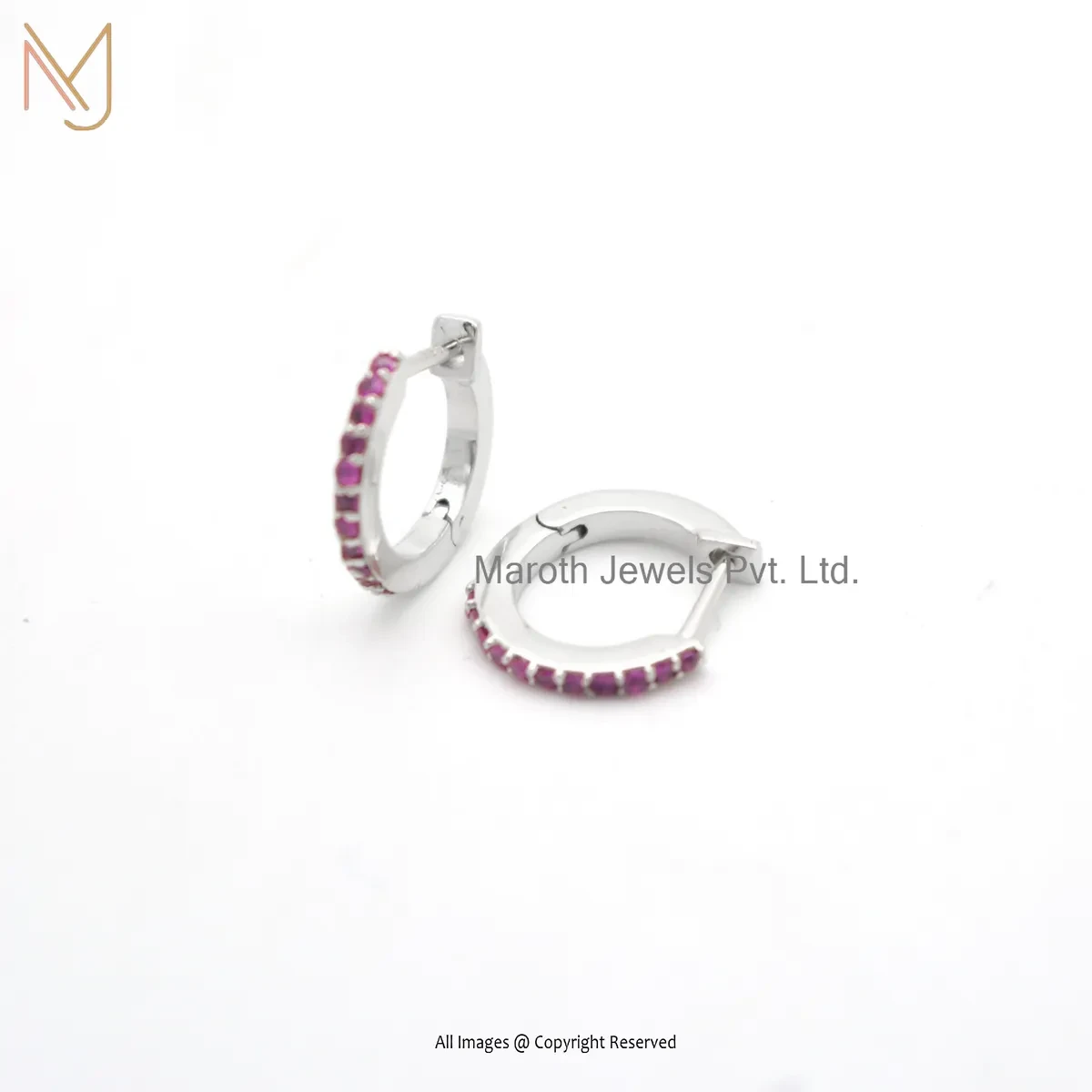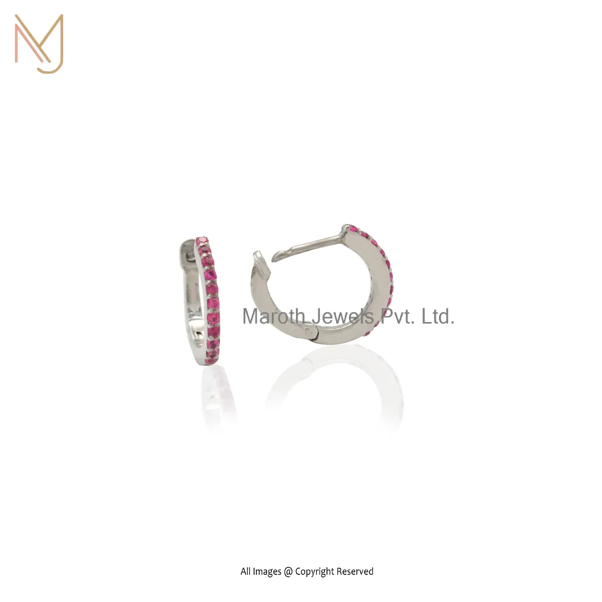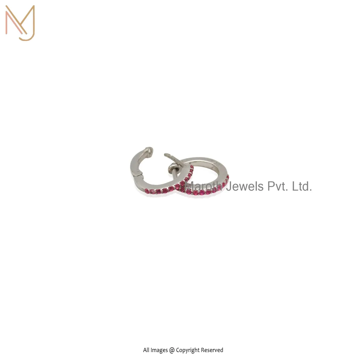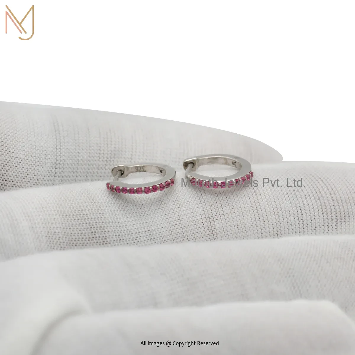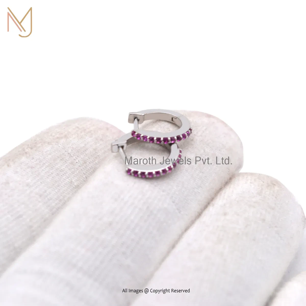 925 Silver White Gold Plated Pink Sapphire Tiny Hoop Huggies Earring Custom Jewelry